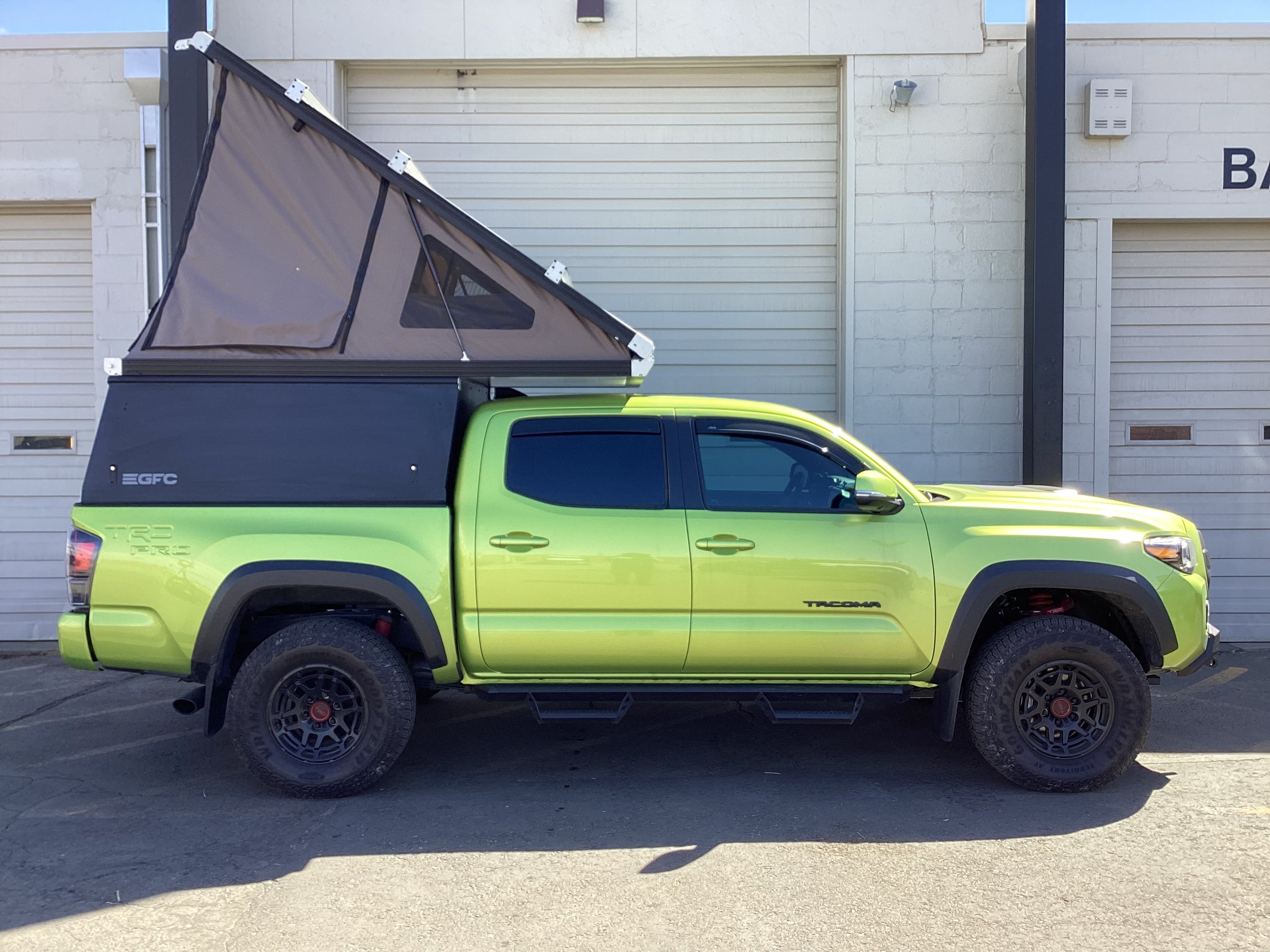 This 2022 Toyota Tacoma is outfitted with a GFC Platform Camper with Black panels. Check out more build specs below.