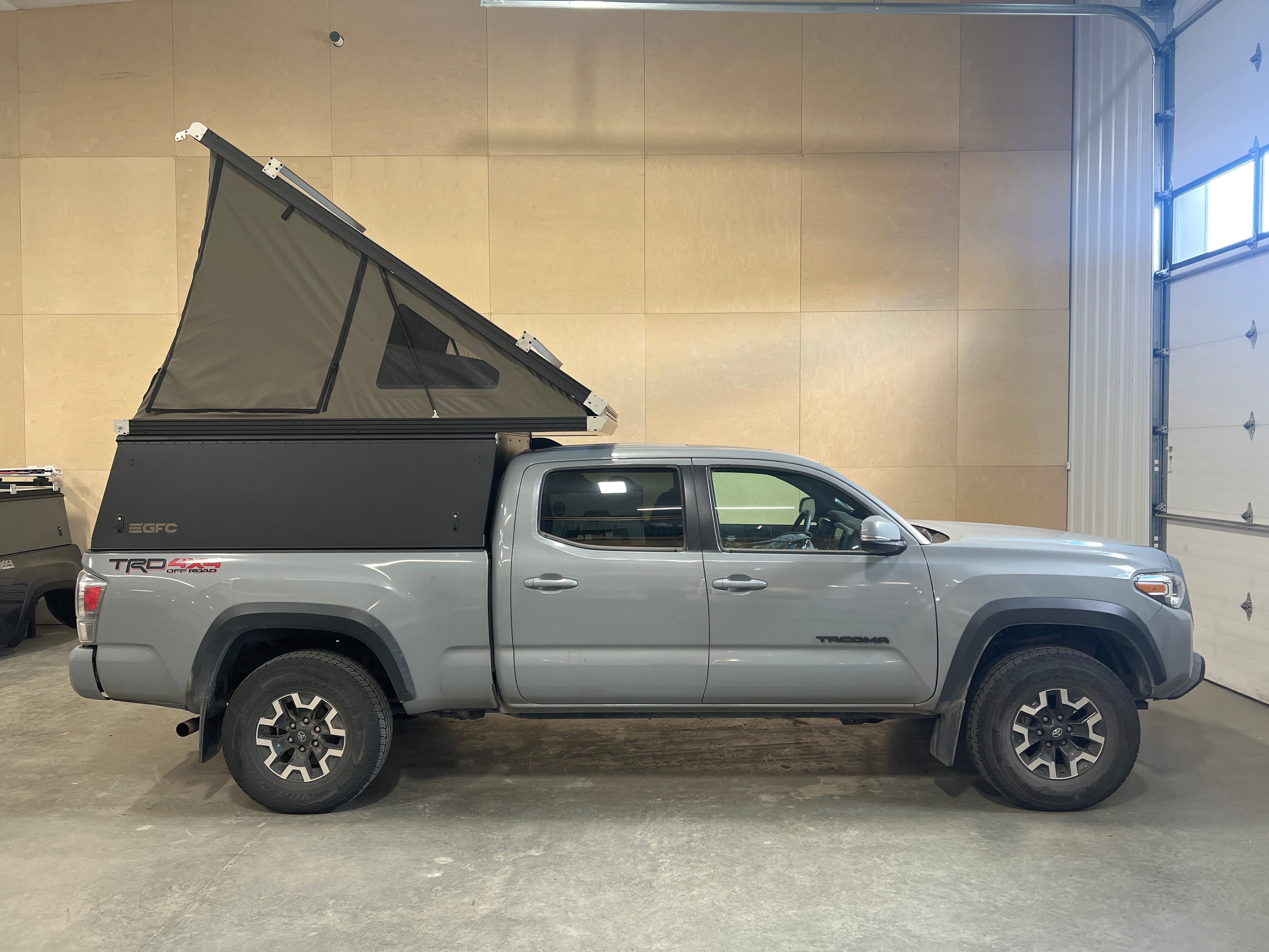 This 2019 Toyota Tacoma is outfitted with a GFC Platform Camper with Black panels. Check out more build specs below.