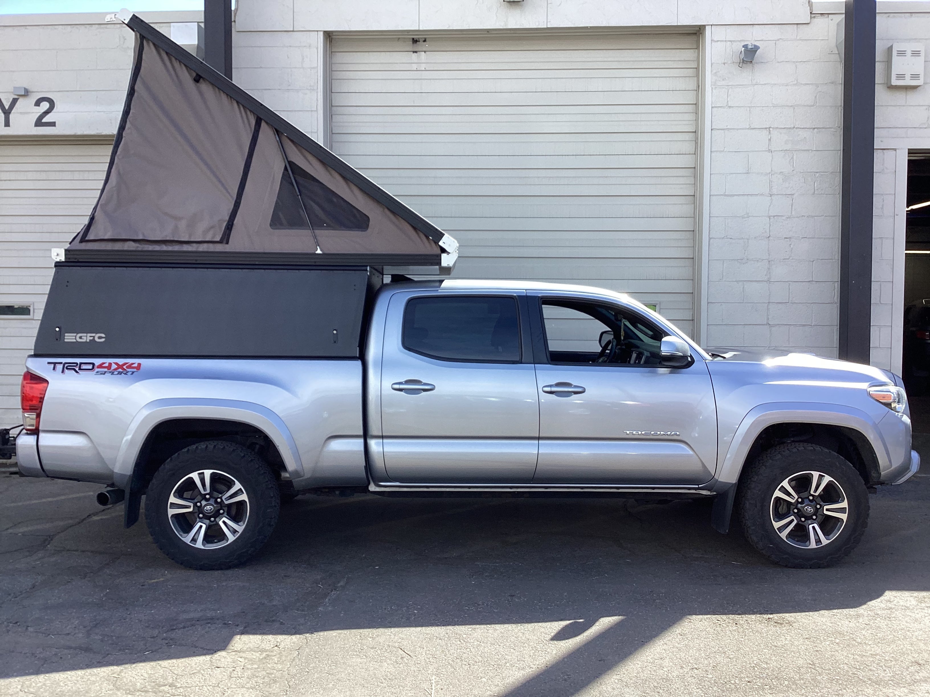 This 2016 Toyota Tacoma is outfitted with a GFC Platform Camper with Black panels. Check out more build specs below.