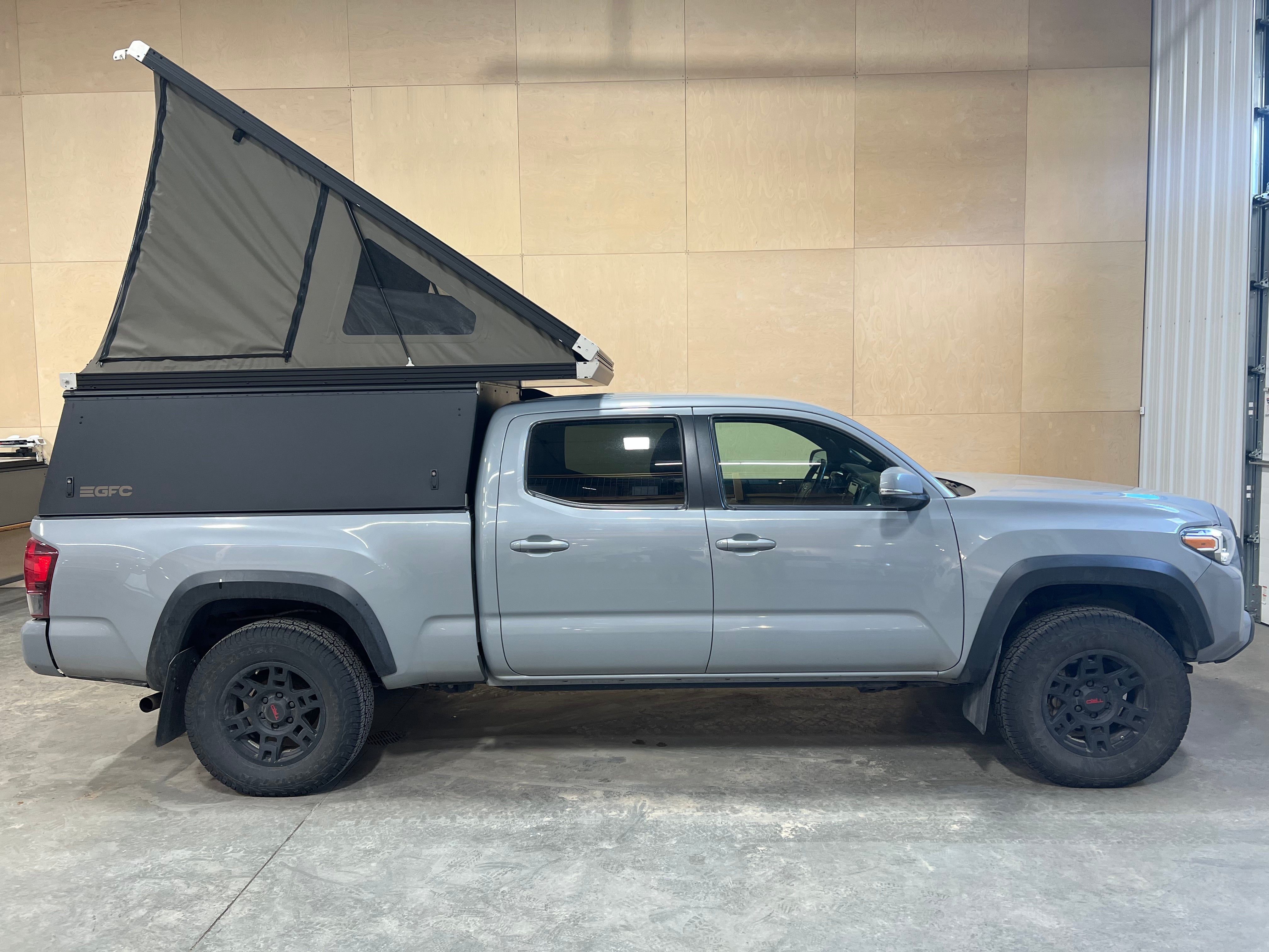 This 2020 Toyota Tacoma is outfitted with a GFC Platform Camper with Black panels. Check out more build specs below.