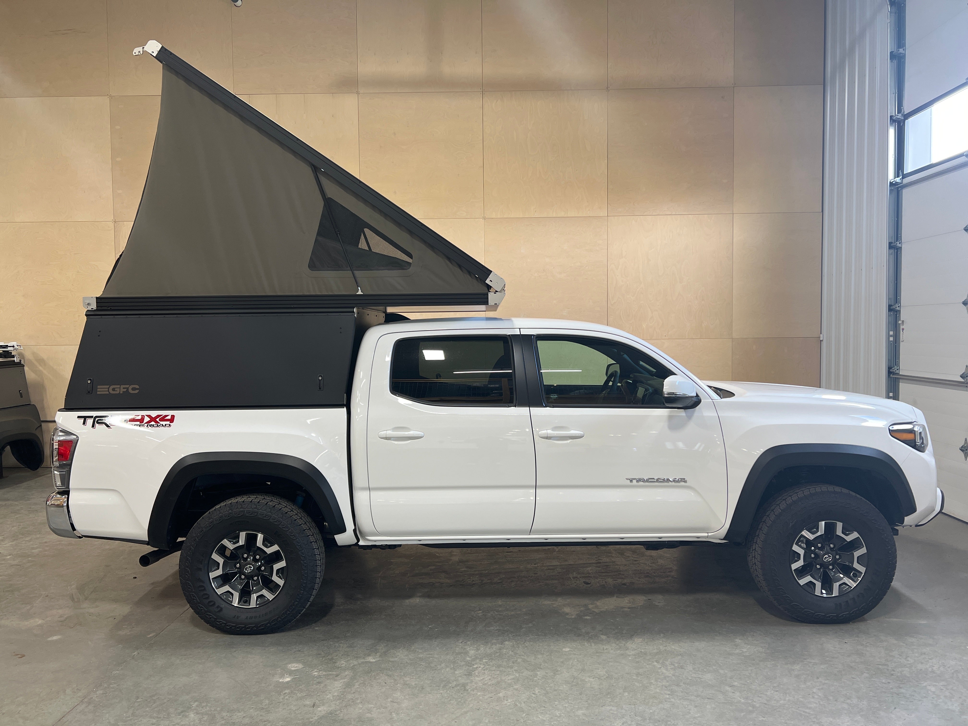 This 2023 Toyota Tacoma is outfitted with a GFC Platform Camper with Black panels. Check out more build specs below.