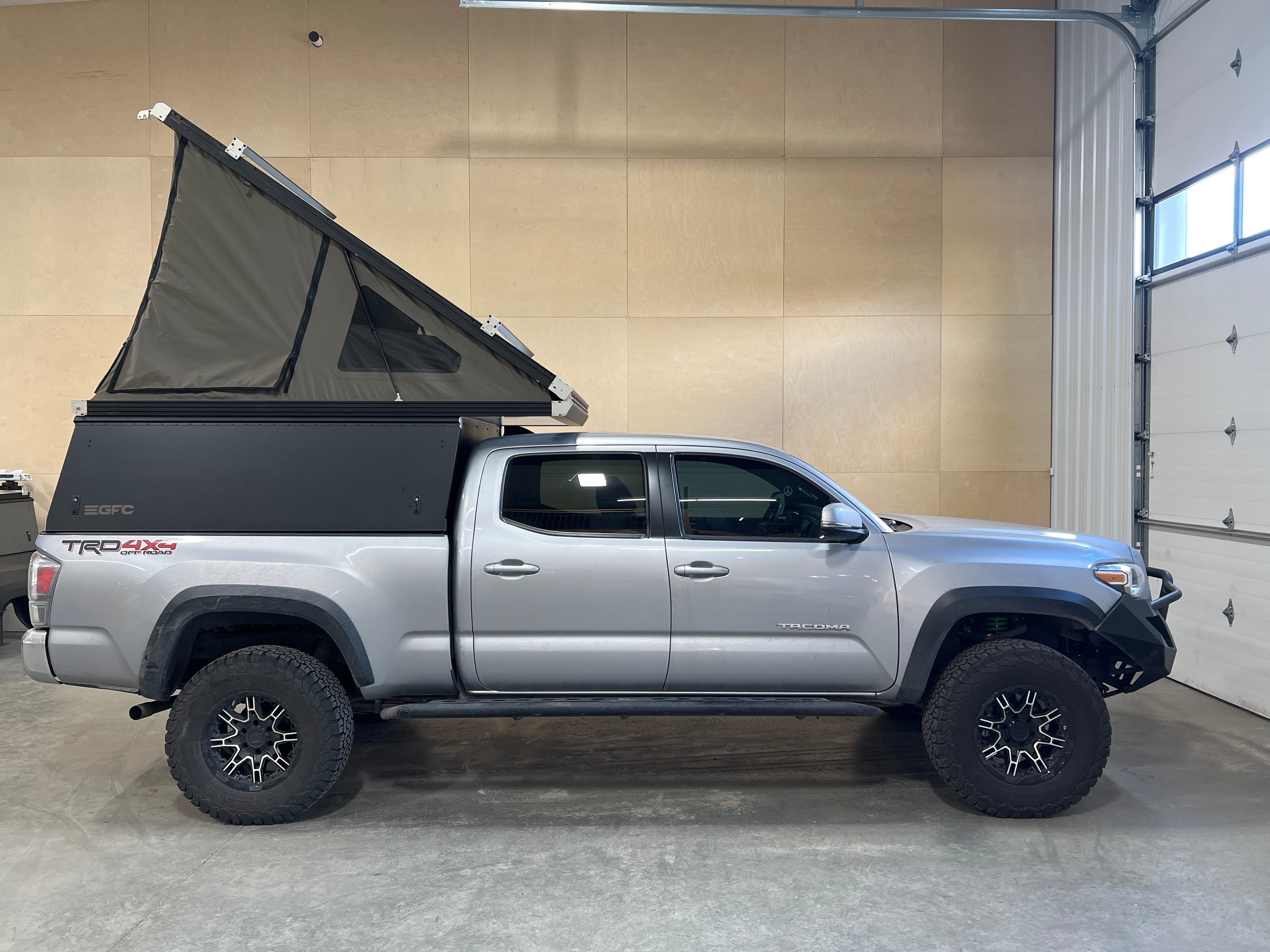 This 2020 Toyota Tacoma is outfitted with a GFC Platform Camper with Black panels. Check out more build specs below.