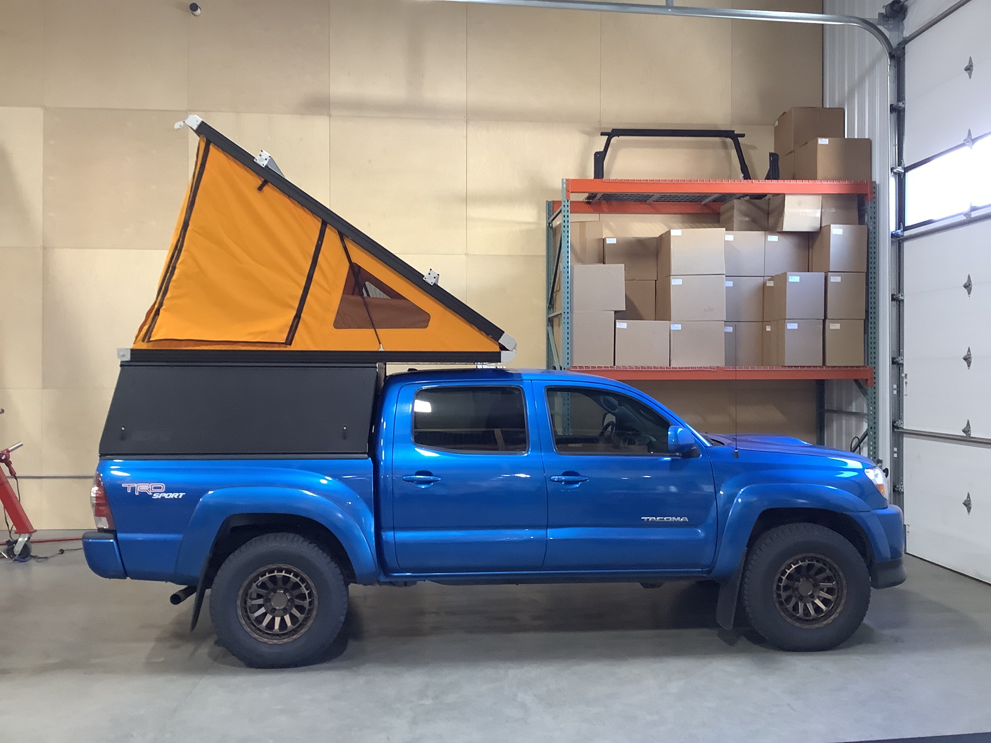 Product: Platform Camper Panel Color: Black GFC Options: Windows, Side Door, Beef Rack Year: 2009 Make: Toyota Model: Tacoma Cab/Bed: Double Cab 5 foot Truck Color Blue Wheels: Black Rhino Suspension: Bilstein Tire: Hankook Dynapro 265/70/R17 Mods: All I need is a GFC Instagram Handle: Install Date: 2022-07-16 Location: MT