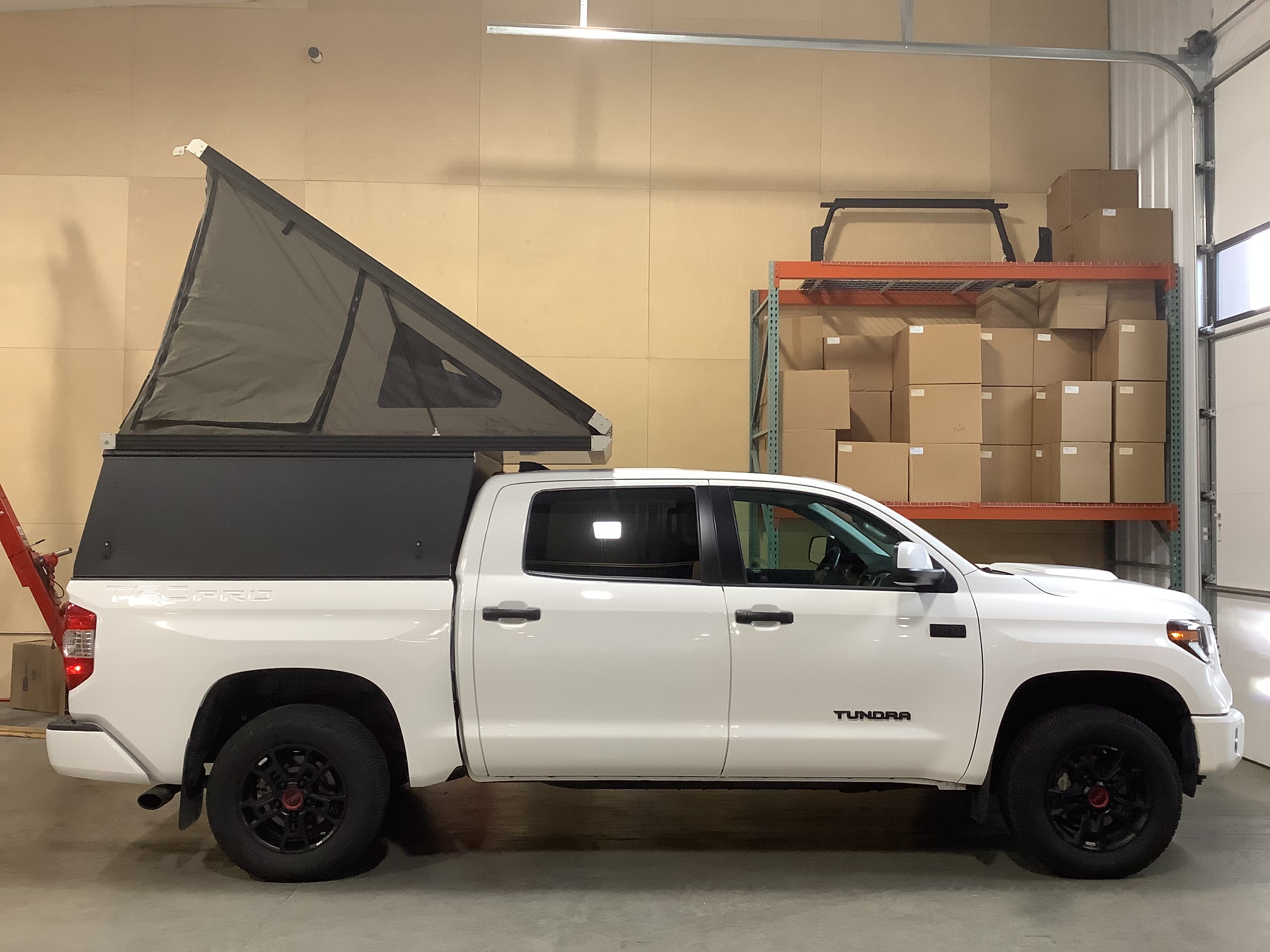 This 2020 Toyota Tundra is outfitted with a GFC Platform Camper with Black panels. Check out more build specs below.