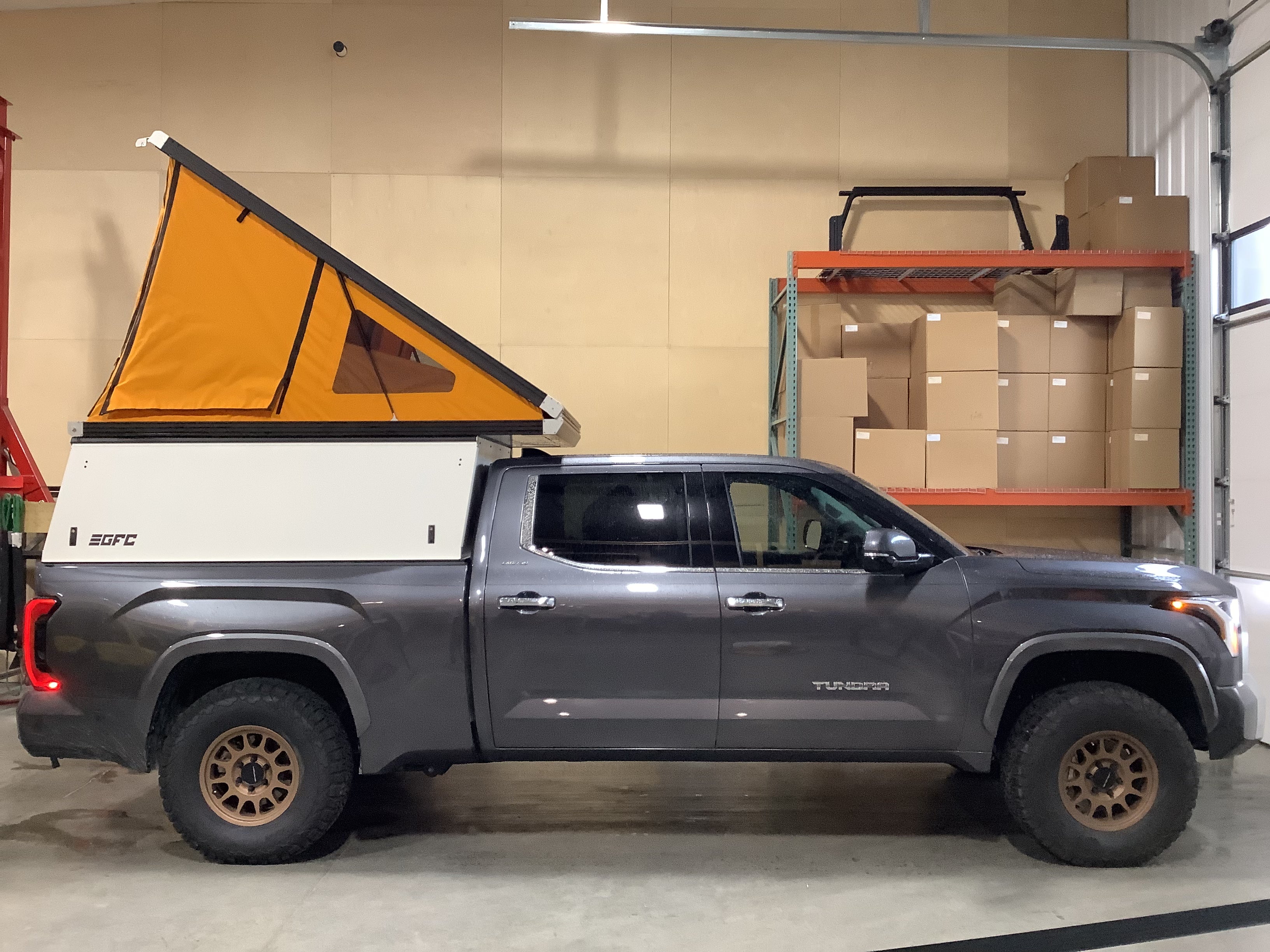 Product: Platform Camper Panel Color: White GFC Options: Windows, Side Door Year: 2022 Make: Toyota Model: Tundra Cab/Bed: Double Cab 6 Foot Truck Color Gray Wheels: Method Suspension: Stock Tire: BFG KO2 35/12.5/R17 Mods: All I need is a GFC Instagram Handle: @BRWittman Install Date: 2022-07-15 Location: TX
