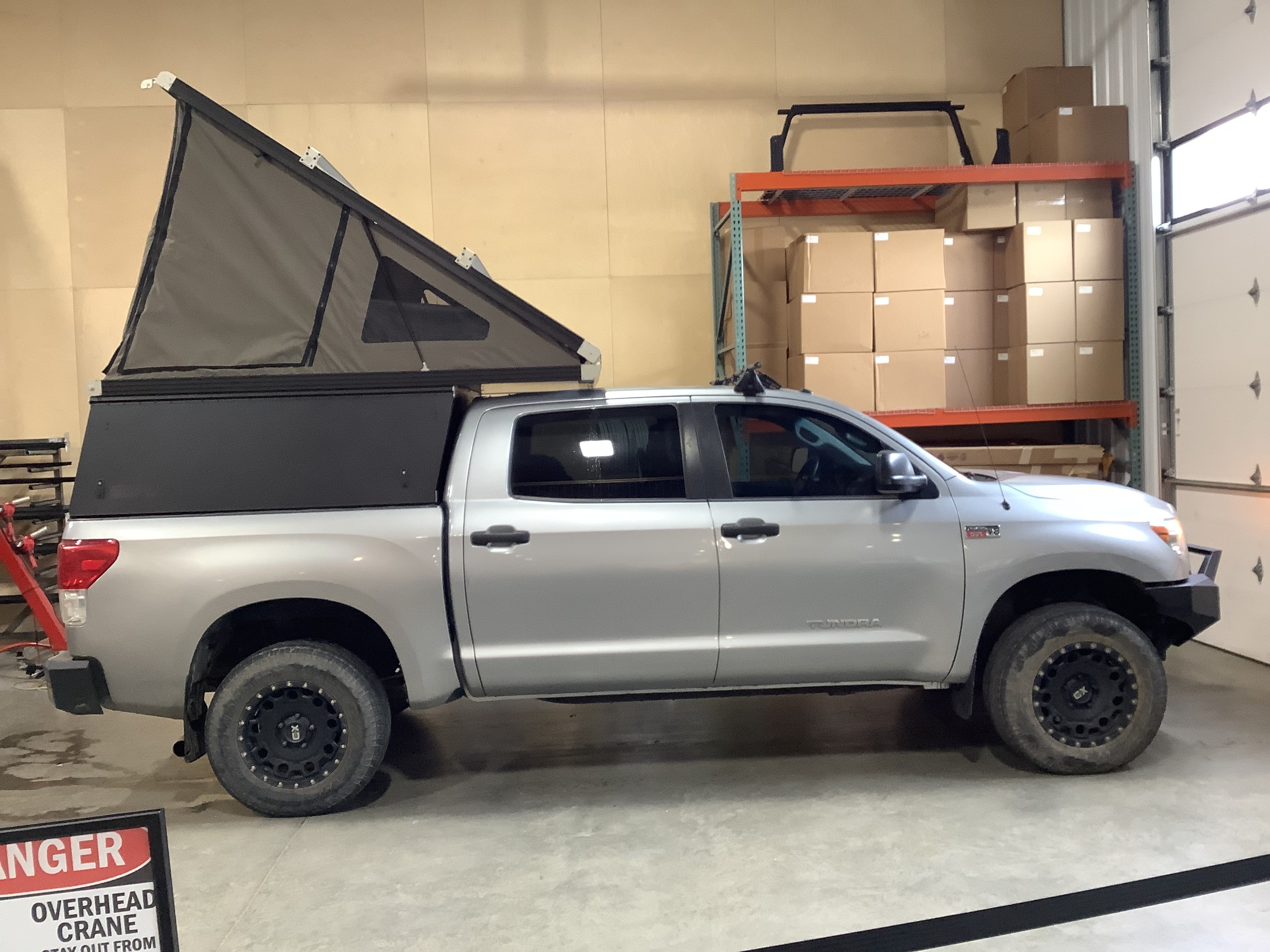 This 2013 Toyota Tundra is outfitted with a GFC Platform Camper with Black panels. Check out more build specs below.