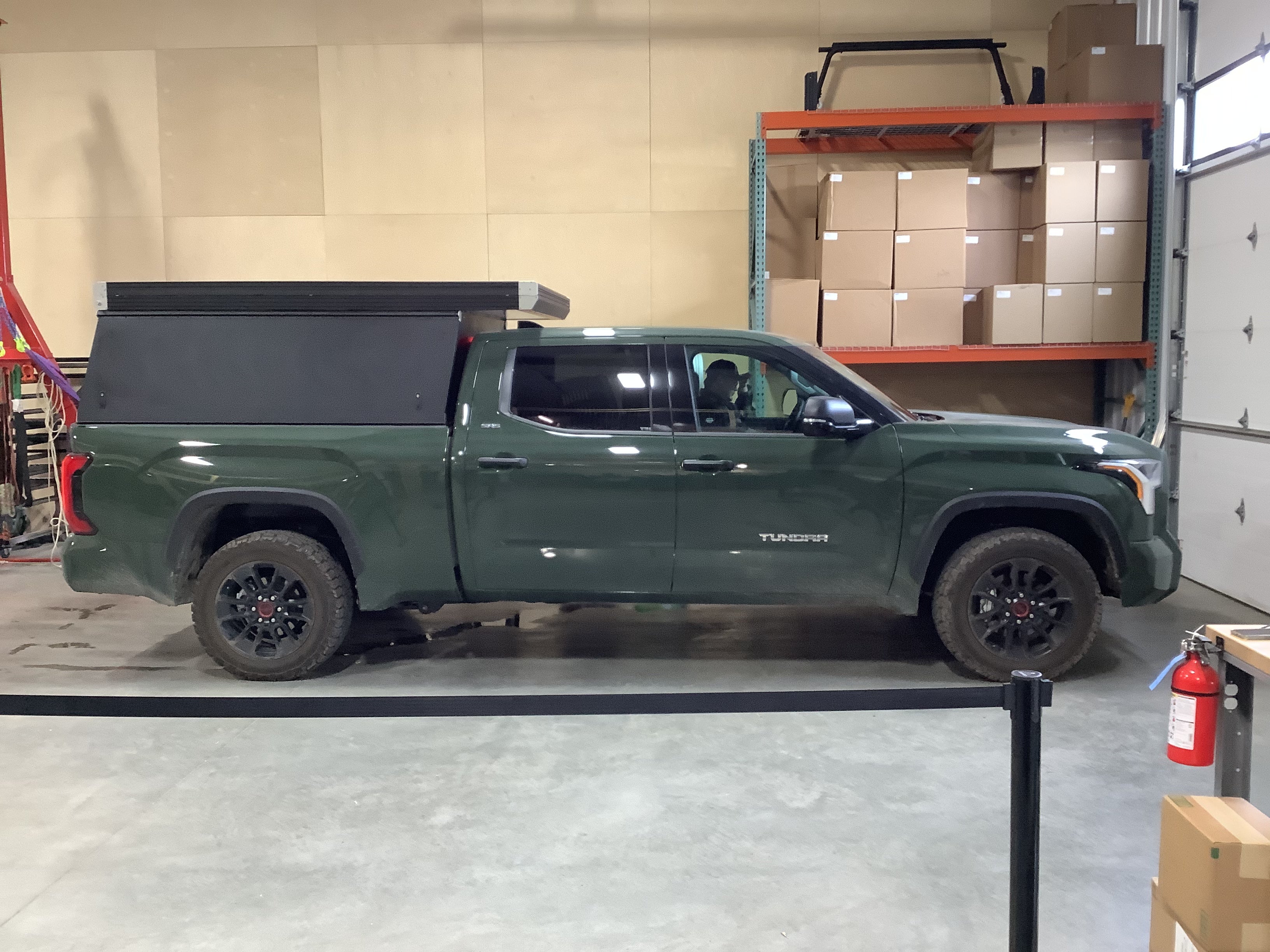 This 2022 Toyota Tundra is outfitted with a GFC Platform Camper with Black panels. Check out more build specs below.