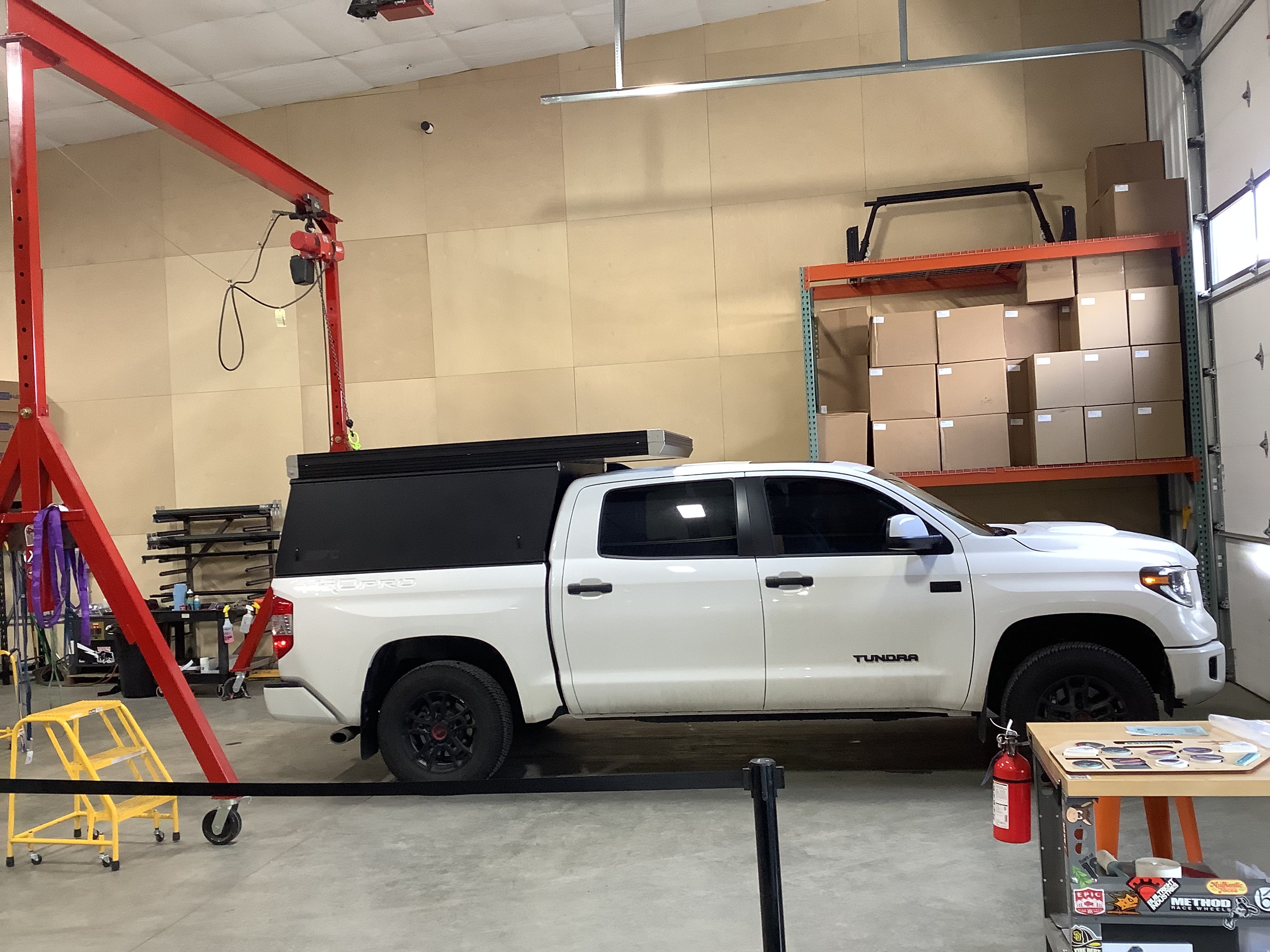 Product: Platform Camper Panel Color: Black GFC Options: Windows, Side Door Year: 2021 Make: Toyota Model: Tundra Cab/Bed: Crew Cab 5 foot Truck Color White Wheels: Stock Suspension: Stock Tire: Michelin Defender LTX 265/75/R18 Mods: All I need is a GFC Instagram Handle: @taylordilick Install Date: 2022-04-17 Location: Washington