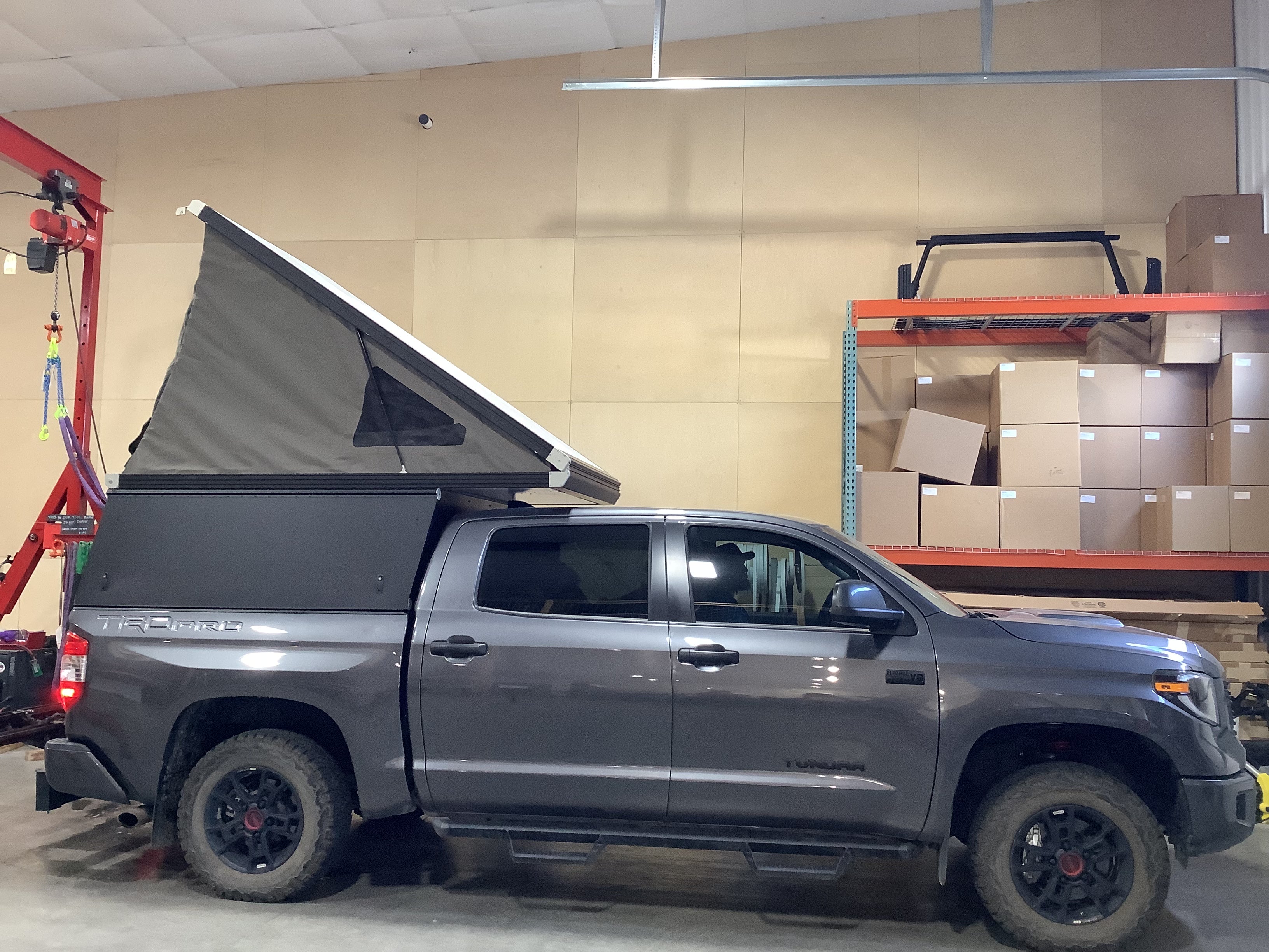 This 2021 Toyota Tundra is outfitted with a GFC Platform Camper with Black panels. Check out more build specs below.