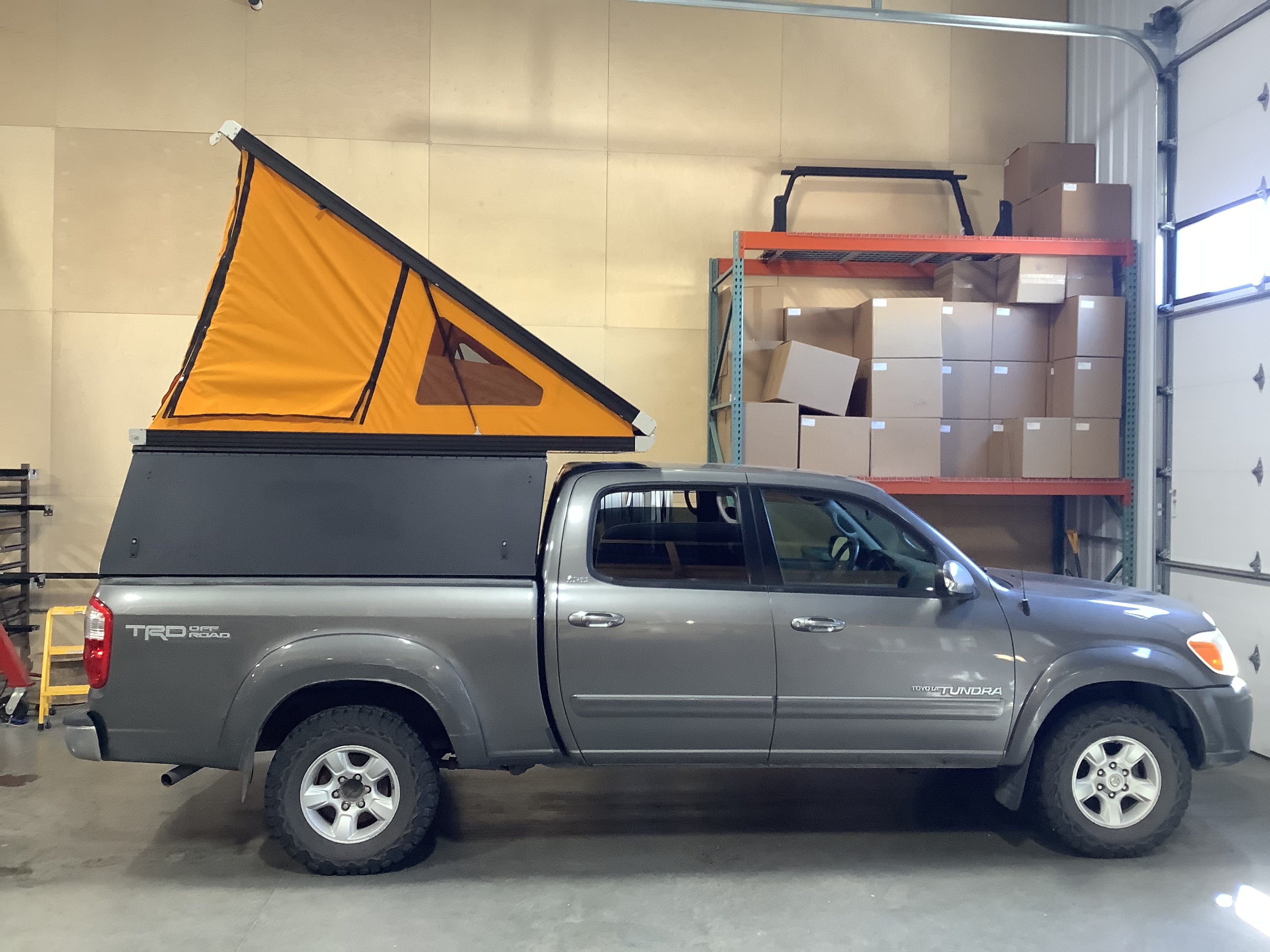 Product: Platform Camper Panel Color: Black GFC Options: Windows Year: 2005 Make: Toyota Model: Tundra Cab/Bed: Double Cab 6 Foot Truck Color Gray Wheels: Stock Suspension: Stock Tire: BFG KO2 265/70/16 Mods: All I need is a GFC Instagram Handle: Install Date: 2022-06-25 Location: MT