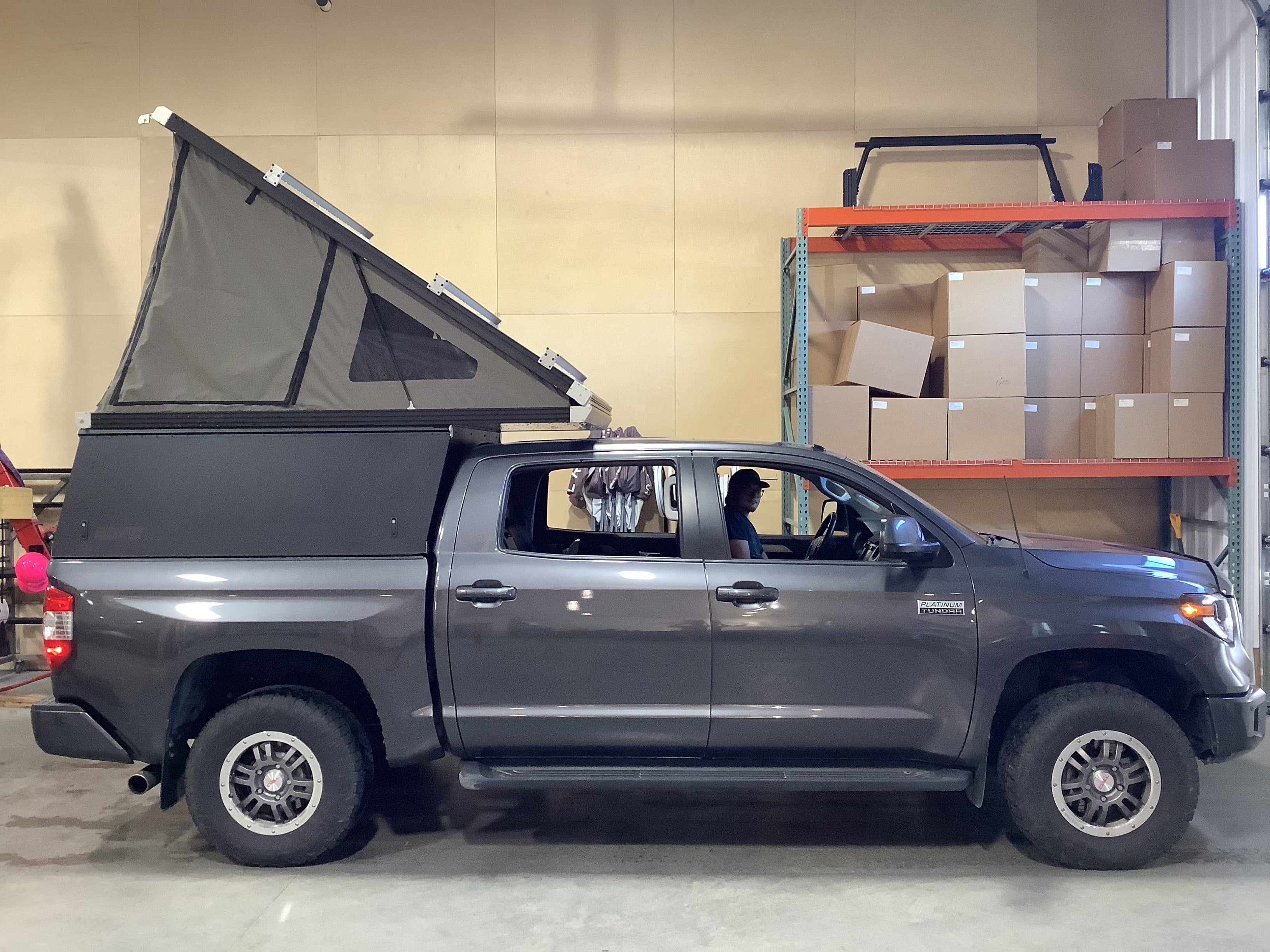 Product: Platform Camper Panel Color: Black GFC Options: Windows, Side Door, Beef Rack Year: 2017 Make: Toyota Model: Tundra Cab/Bed: Crew Cab 5 foot Truck Color Gray Wheels: Stock Suspension: Fox Tire: Toyo Open Country AT3 285/70/R17 Mods: All I need is a GFC Instagram Handle: Install Date: 2022-06-30 Location: CA