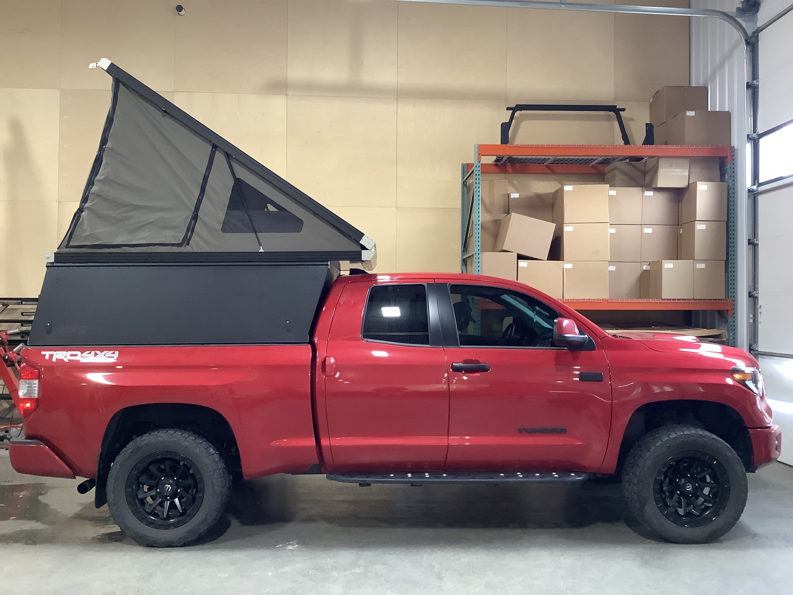 Product: Platform Camper Panel Color: Black GFC Options: Windows, Side Door Year: 2020 Make: Toyota Model: Tundra Cab/Bed: Double Cab 6 Foot Truck Color Red Wheels: Fuel Suspension: Stock Tire: Toyo Open Country A/T 305/55/R20 Mods: All I need is a GFC Instagram Handle: Install Date: 2022-06-19 Location: Georgia