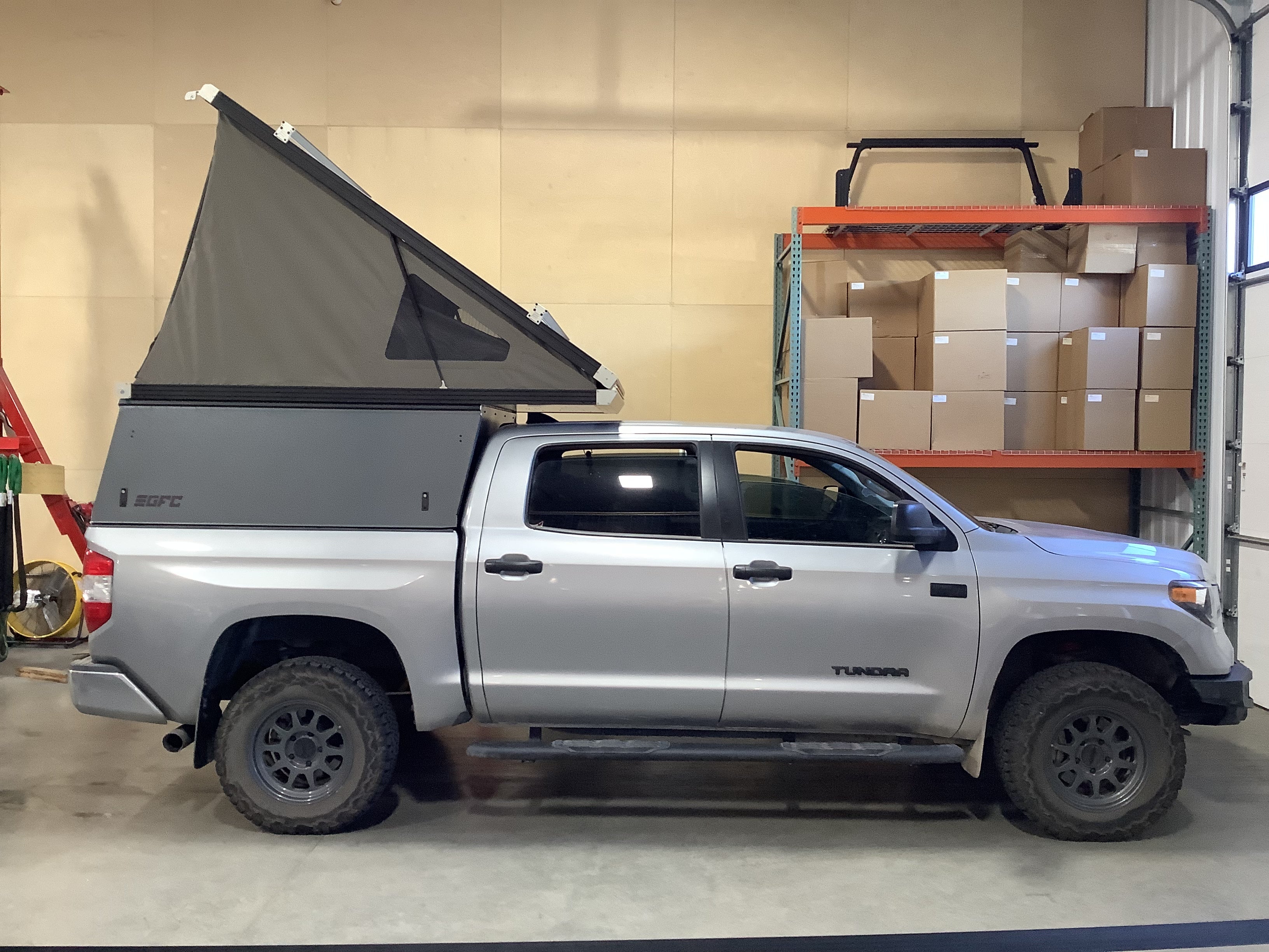 This 2020 Toyota Tundra is outfitted with a GFC Platform Camper with Battleship Gray panels. Check out more build specs below.