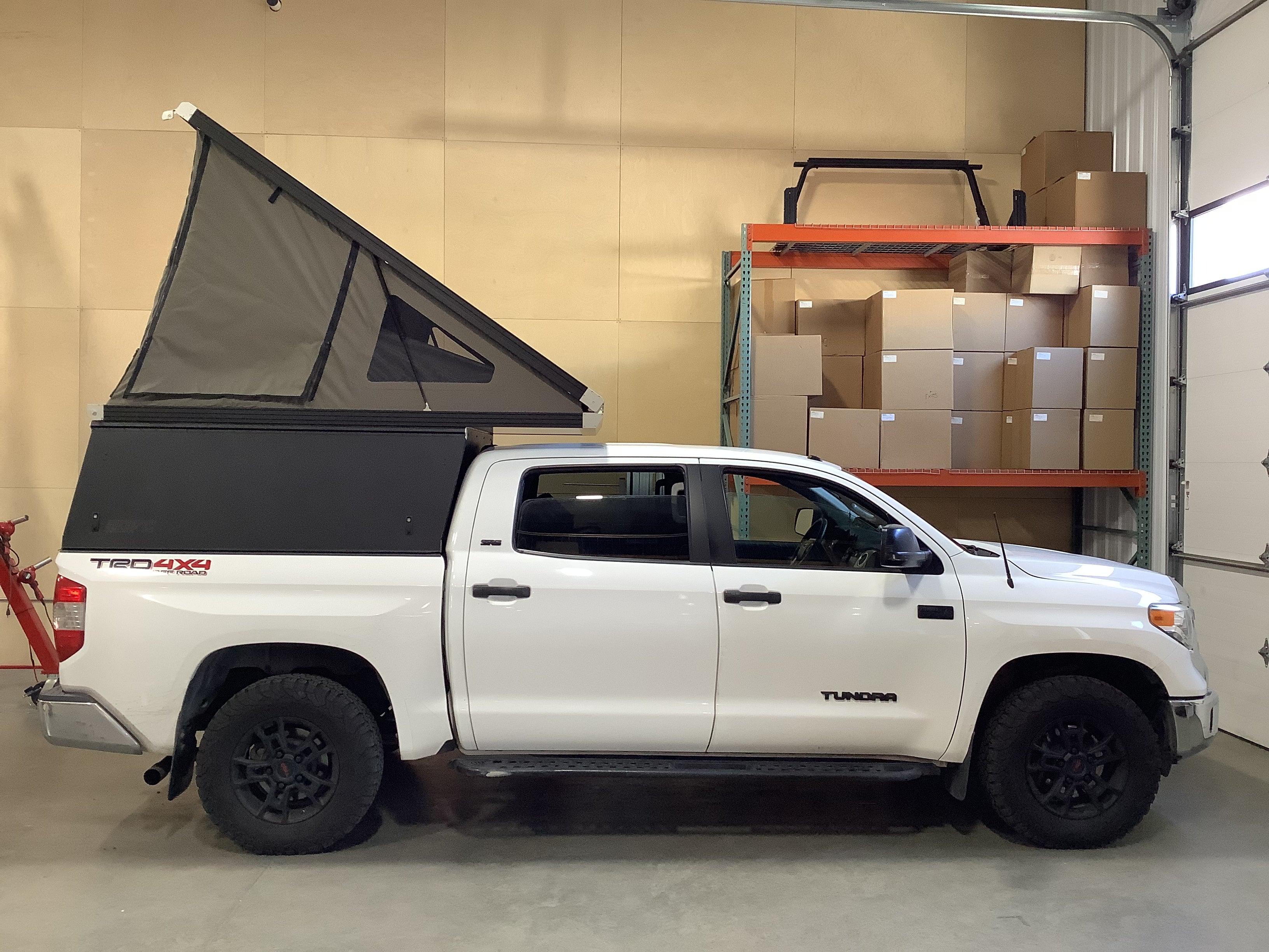 Product: Platform Camper Panel Color: Black GFC Options: Windows, Side Door Year: 2021 Make: Toyota Model: Tundra Cab/Bed: Double Cab 6 Foot Truck Color White Wheels: Stock Suspension: Stock Tire: BFG KO2 275/70/R18 Mods: All I need is a GFC Instagram Handle: Install Date: 2022-07-22 Location: NM