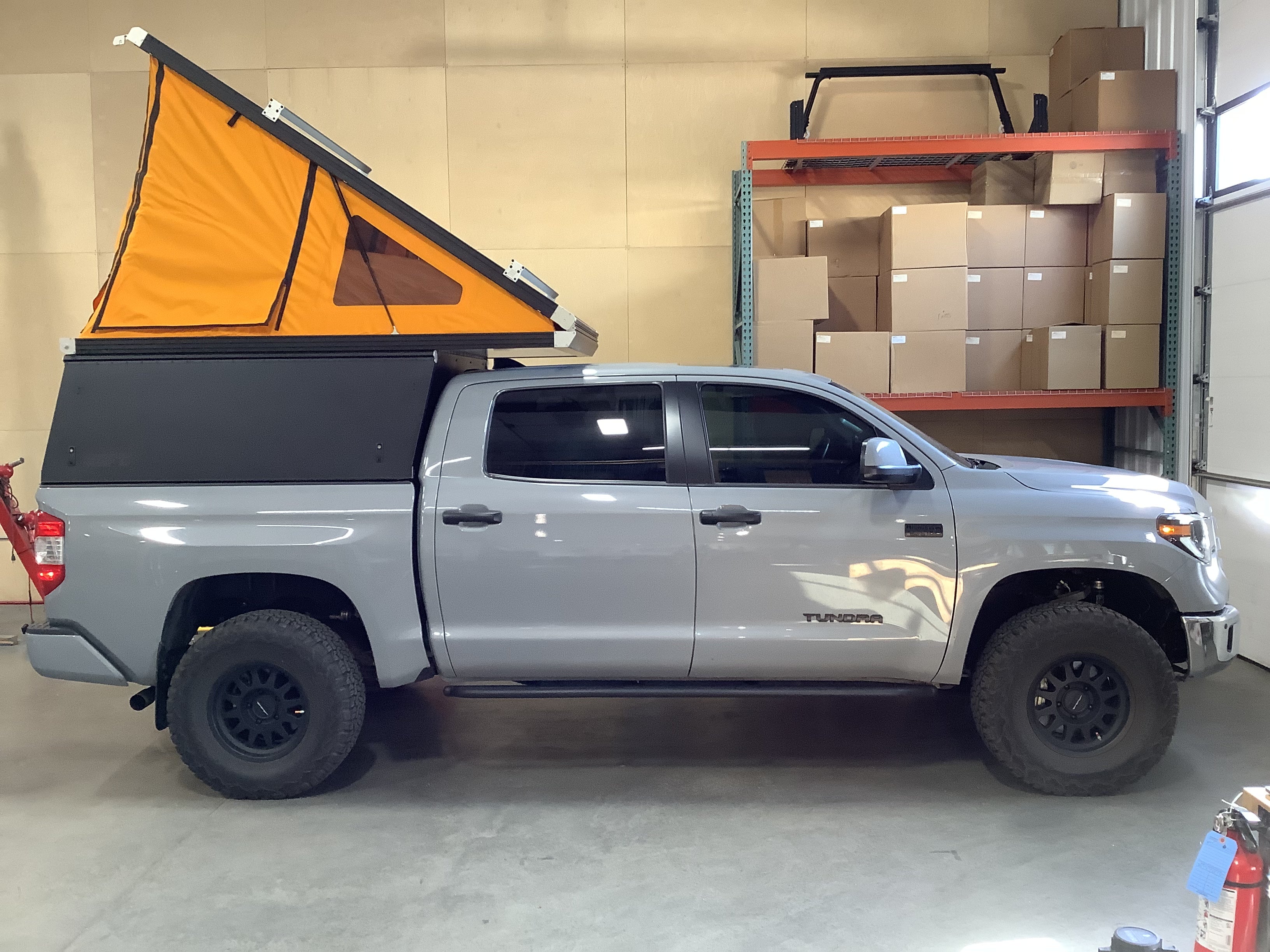 This 2020 Toyota Tundra is outfitted with a GFC Platform Camper with Black panels. Check out more build specs below.