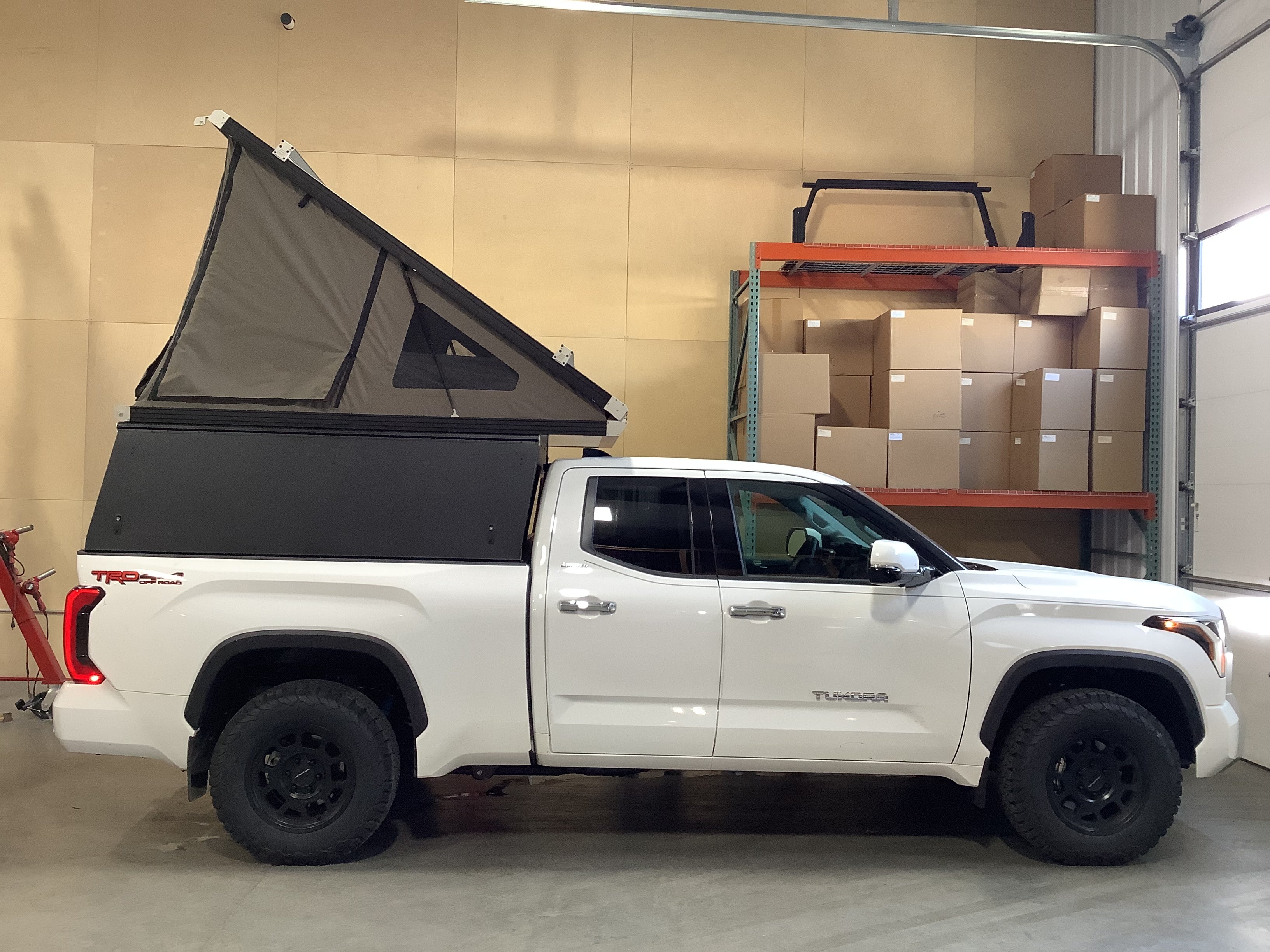 Product: Platform Camper Panel Color: Black GFC Options: Windows, Side Door, Beef Rack Year: 2022 Make: Toyota Model: Tundra Cab/Bed: Double Cab 6 Foot Truck Color White Wheels: Method Suspension: Stock Tire: BFG KO2 275/70/R18 Mods: All I need is a GFC Instagram Handle:@JvkeWillivms Install Date: 2022-07-31 Location: NV