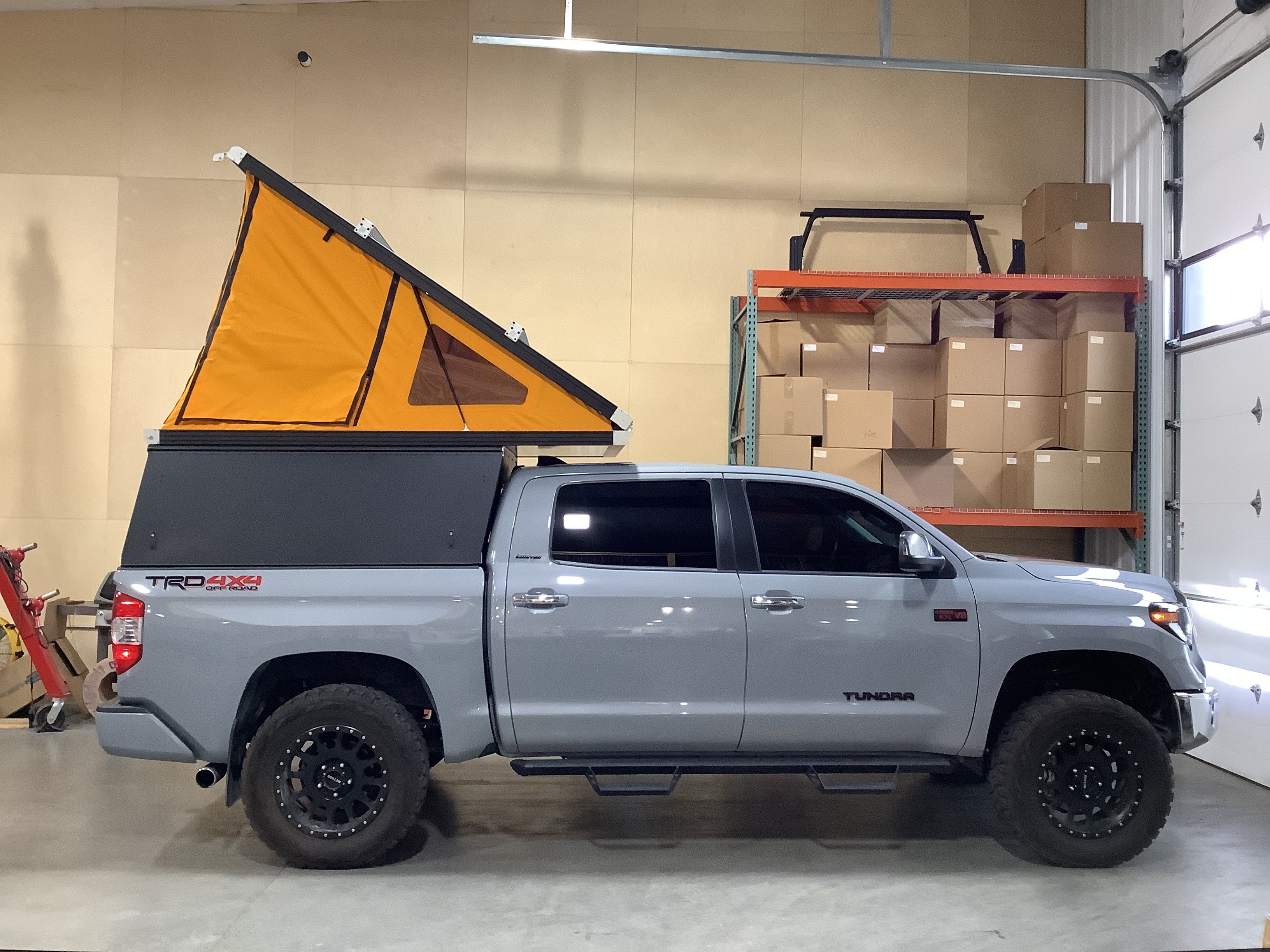 Product: Platform Camper Panel Color: Black GFC Options: Windows, Side Door, Beef Rack Year: 2020 Make: Toyota Model: Tundra Cab/Bed: Double Cab 6 Foot Truck Color Gray Wheels: Method Suspension: Bilstein Tire: Toyo Open Country 35/12.5/R20 Mods: All I need is a GFC Instagram Handle: @ChraigChrist39 Install Date: 2022-08-26 Location: CA