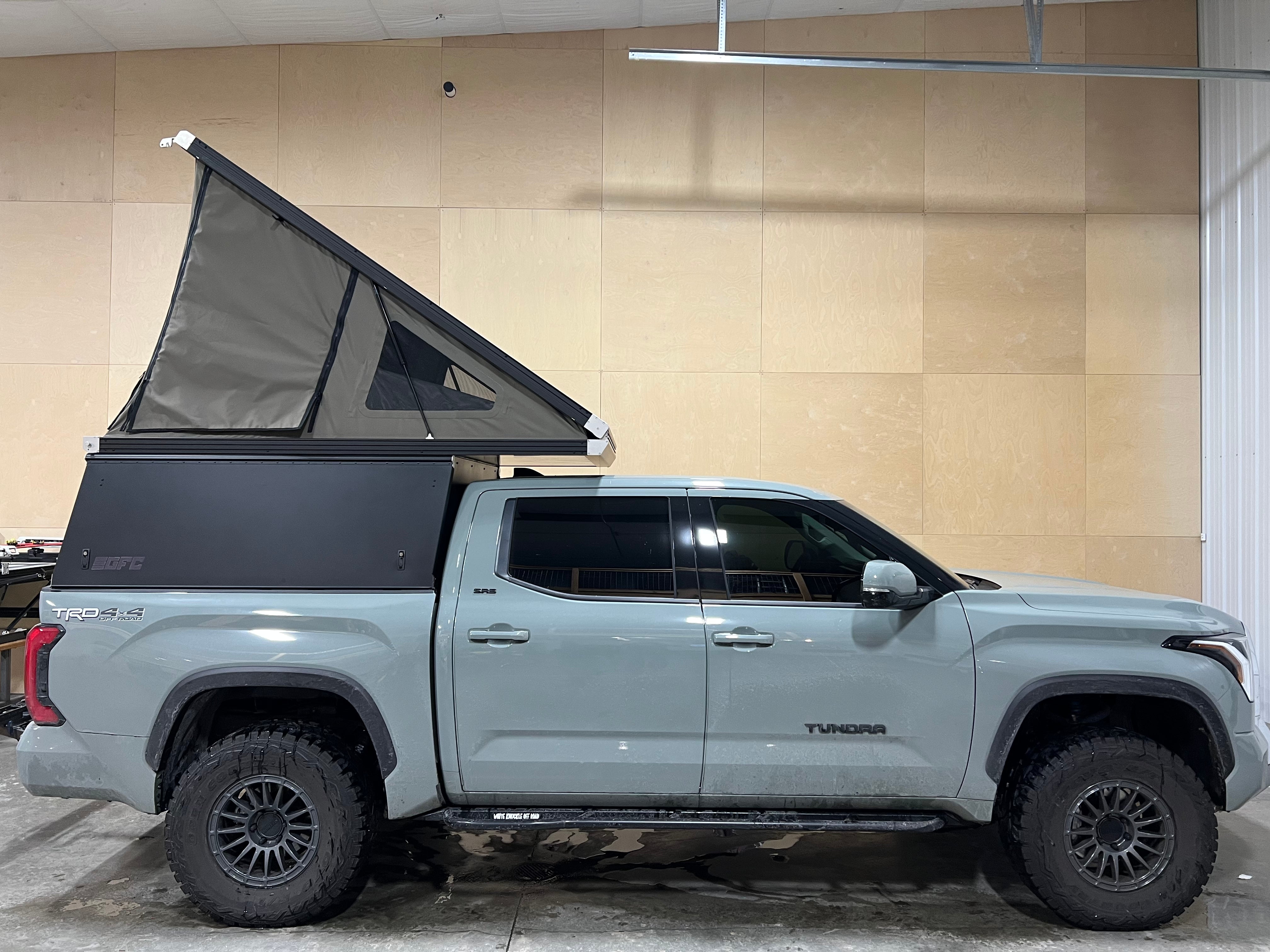 This 2022 Toyota Tundra is outfitted with a GFC Platform Camper with Black panels. Check out more build specs below.