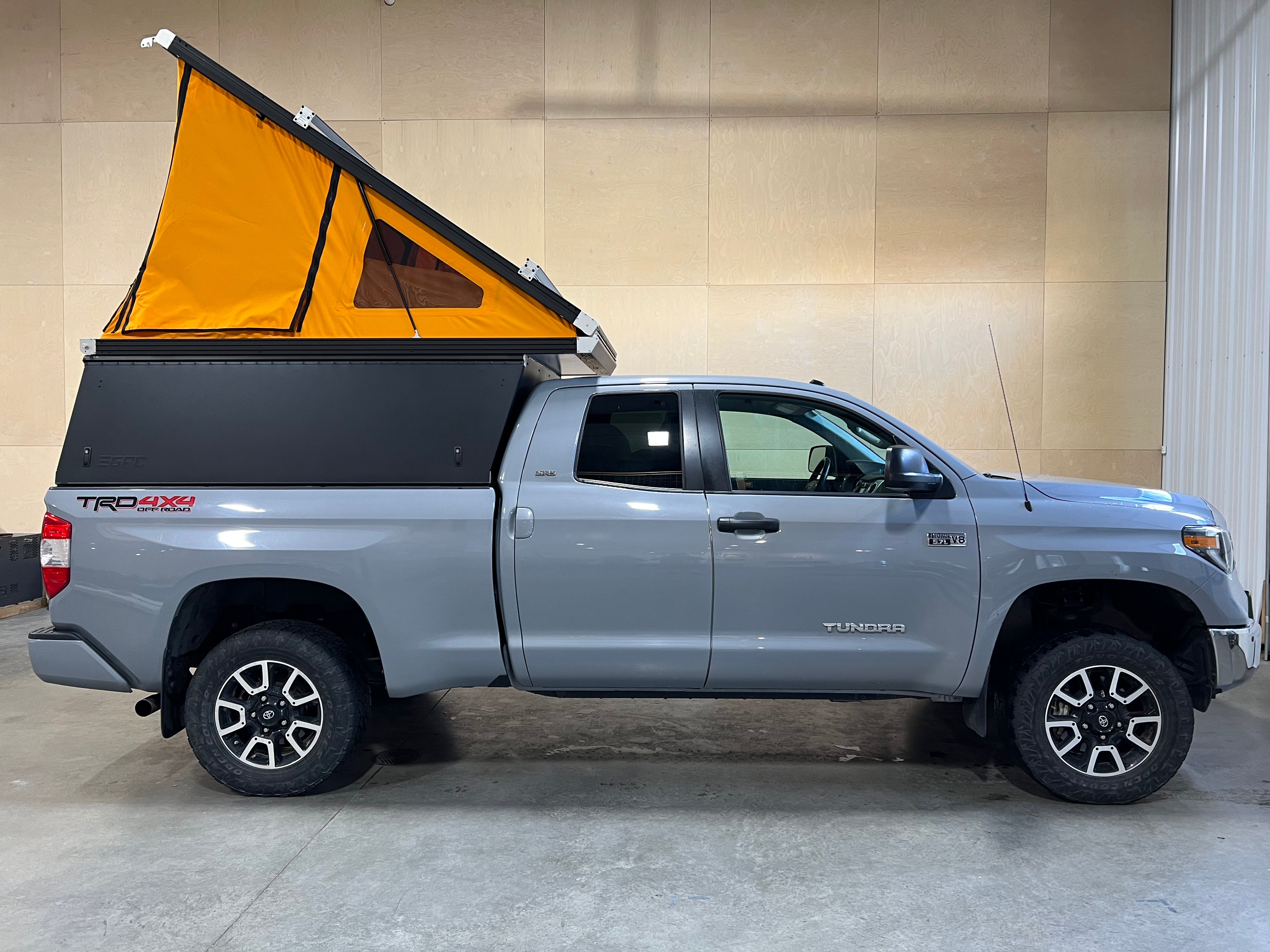 This 2020 Toyota Tundra is outfitted with a GFC Platform Camper with Black panels. Check out more build specs below.