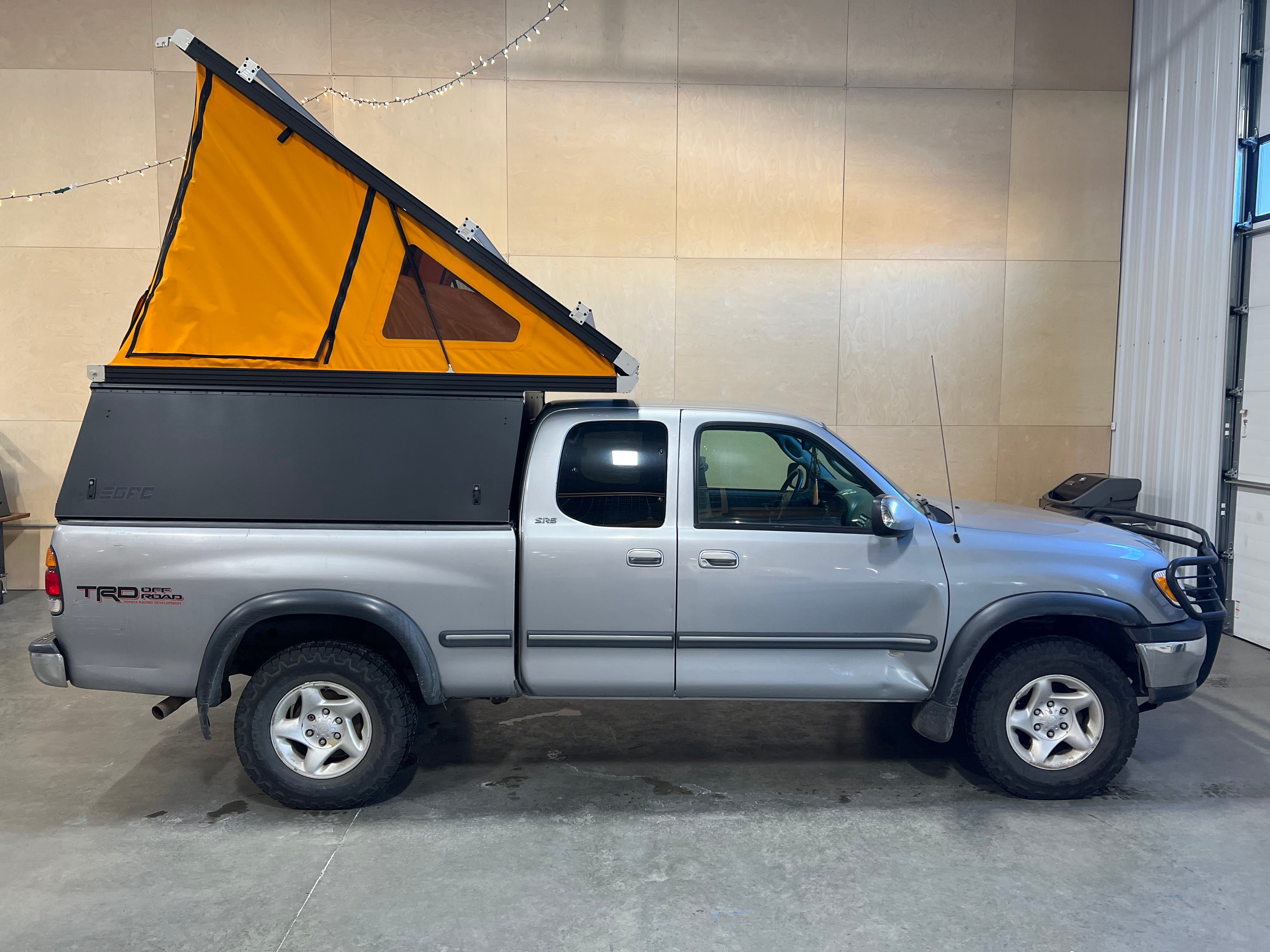 This 2002 Toyota Tundra is outfitted with a GFC Platform Camper with Black panels. Check out more build specs below.