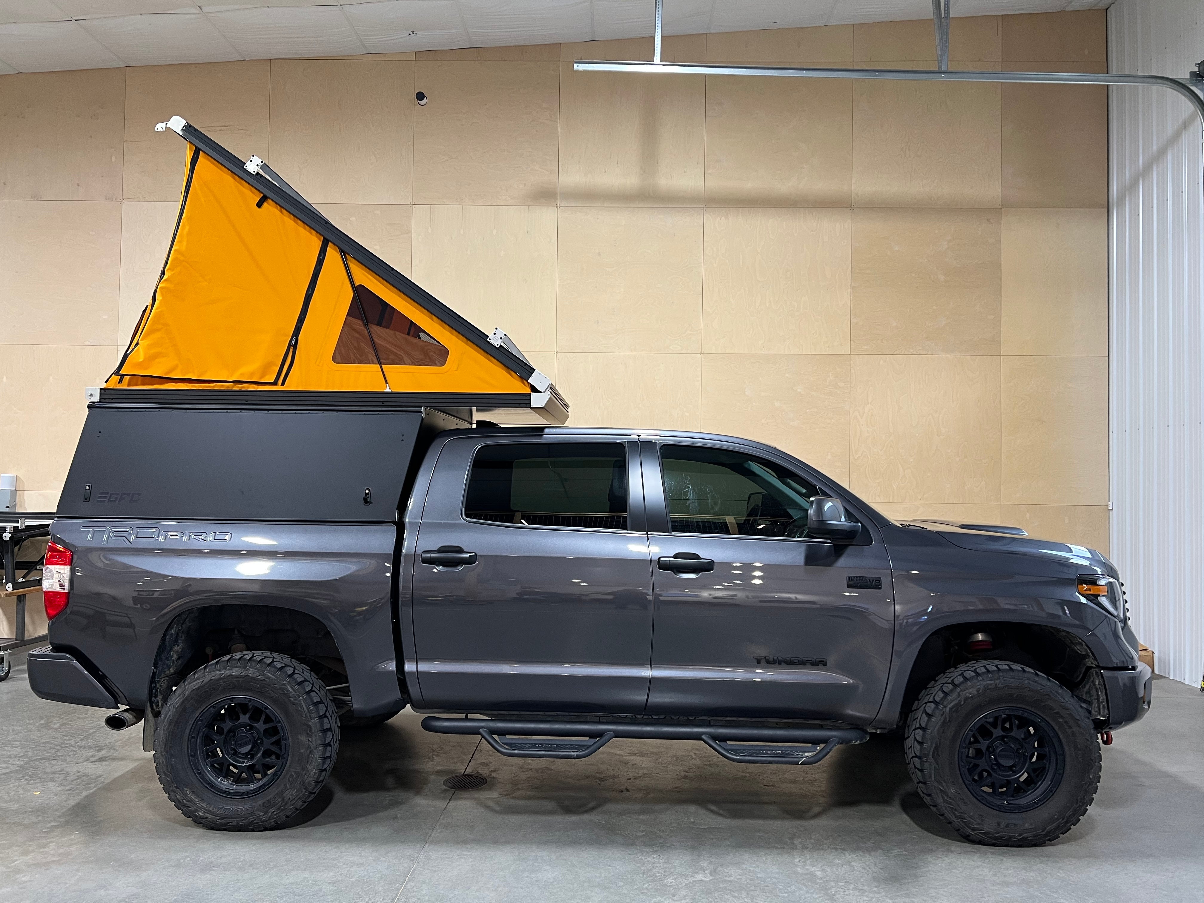 This 2020 Toyota Tundra is outfitted with a GFC Platform Camper with Black panels. Check out more build specs below.