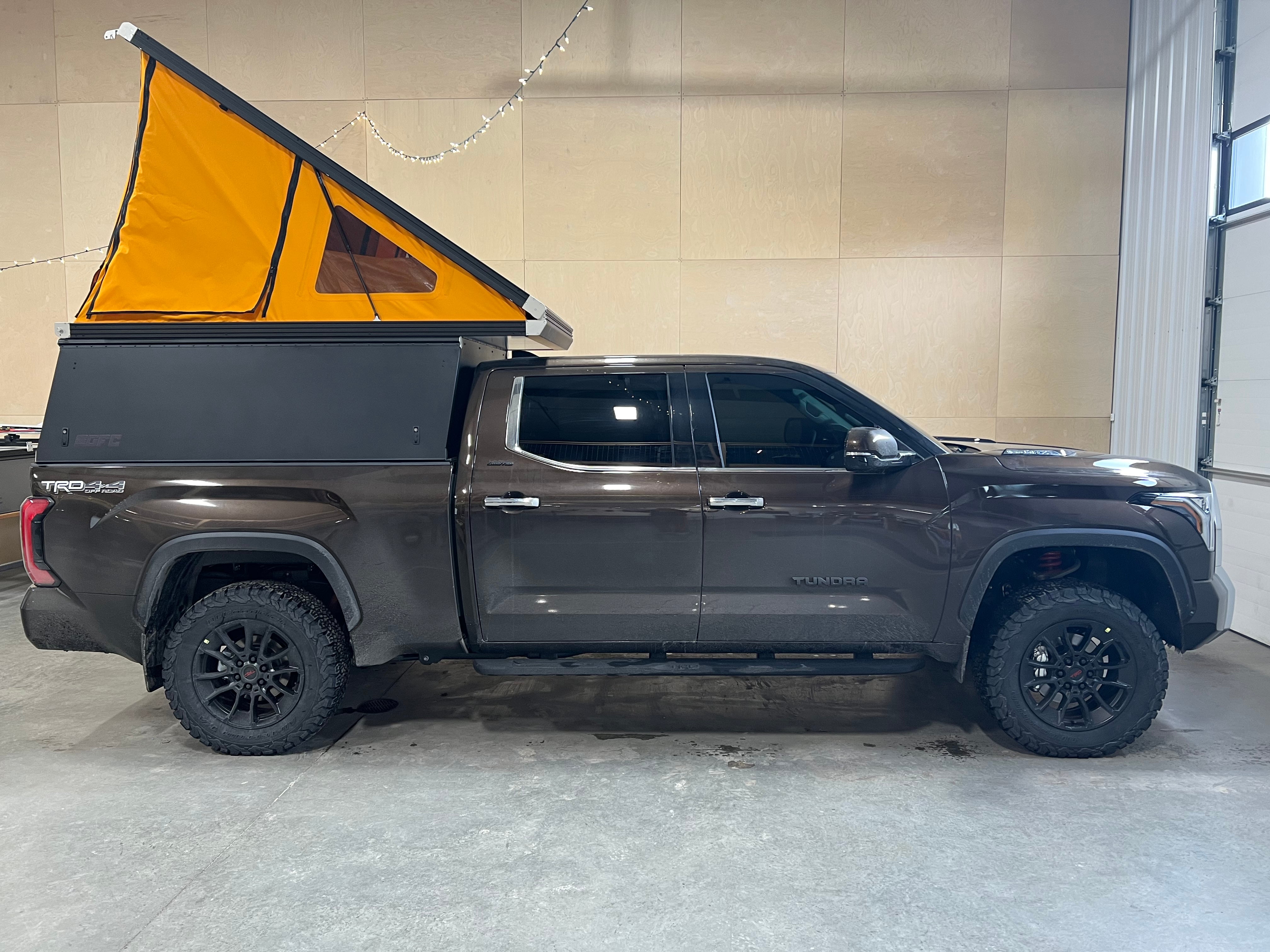 This 2023 Toyota Tundra is outfitted with a GFC Platform Camper with Black panels. Check out more build specs below.