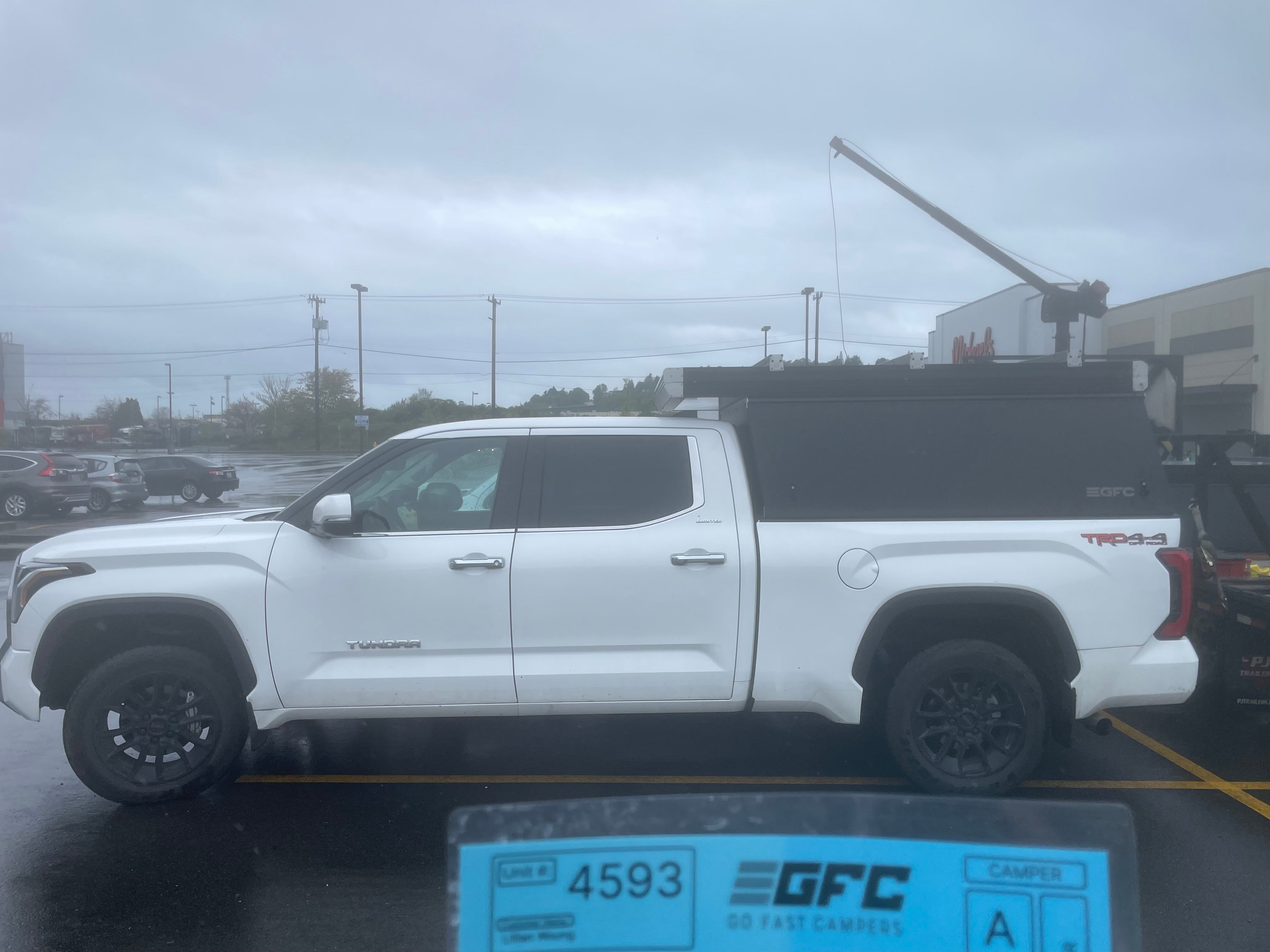 This 2022 Toyota Tundra is outfitted with a GFC Platform Camper with Black panels. Check out more build specs below.