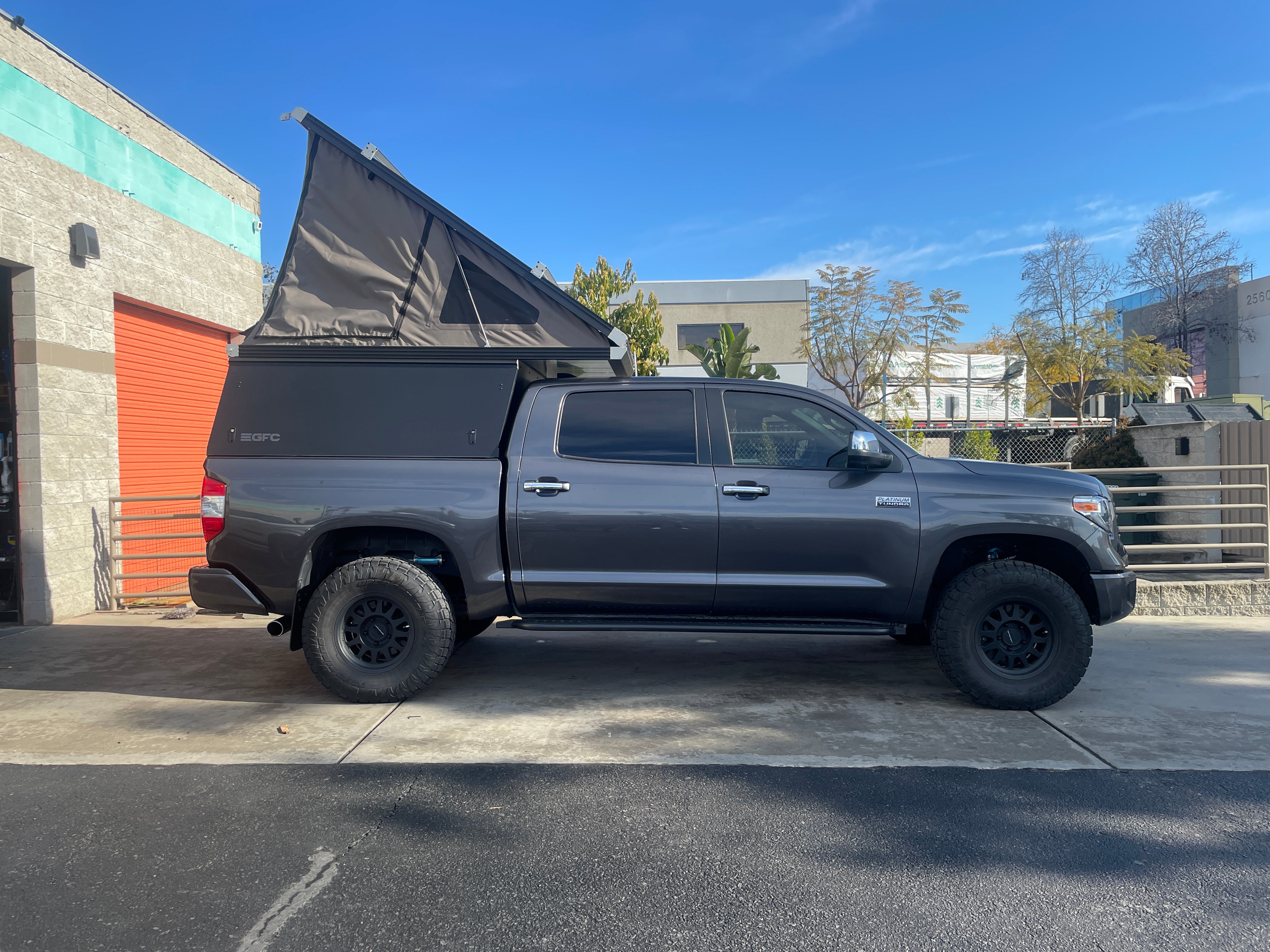 This 2020 Toyota Tundra is outfitted with a GFC Platform Camper with Black panels. Check out more build specs below.