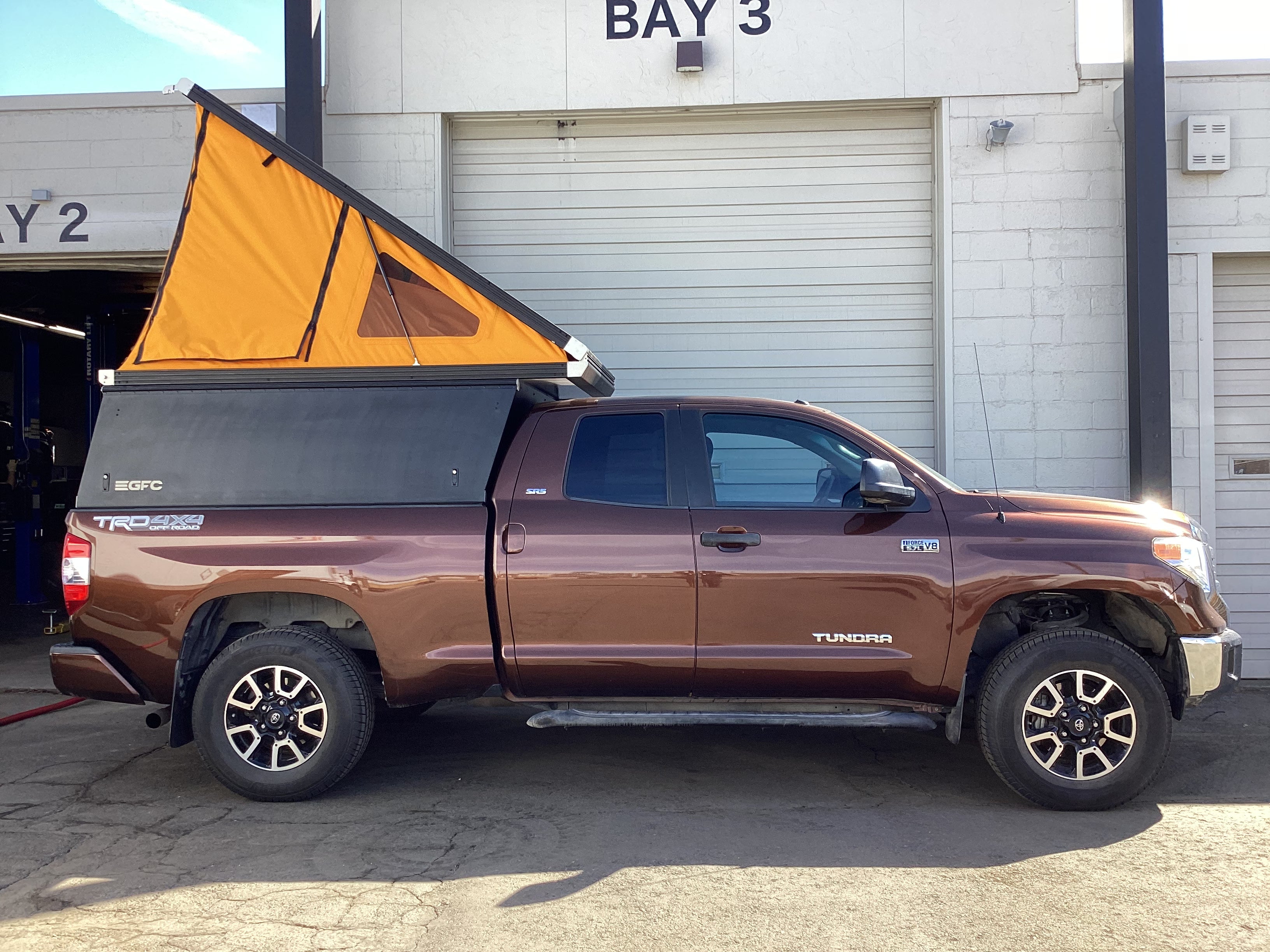 This 2016 Toyota Tundra is outfitted with a GFC Platform Camper with Black panels. Check out more build specs below.
