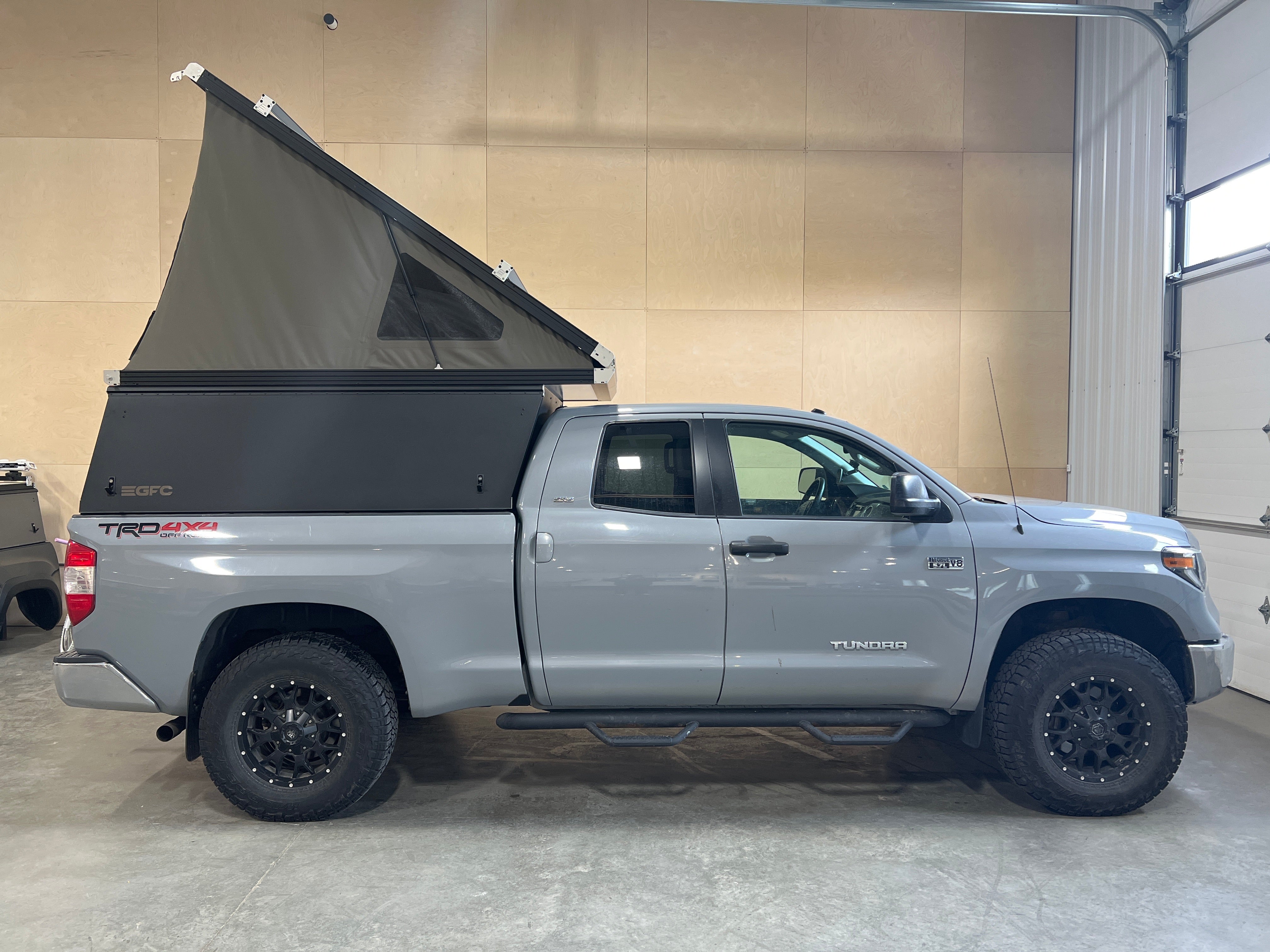 This 2018 Toyota Tundra is outfitted with a GFC Platform Camper with Black panels. Check out more build specs below.