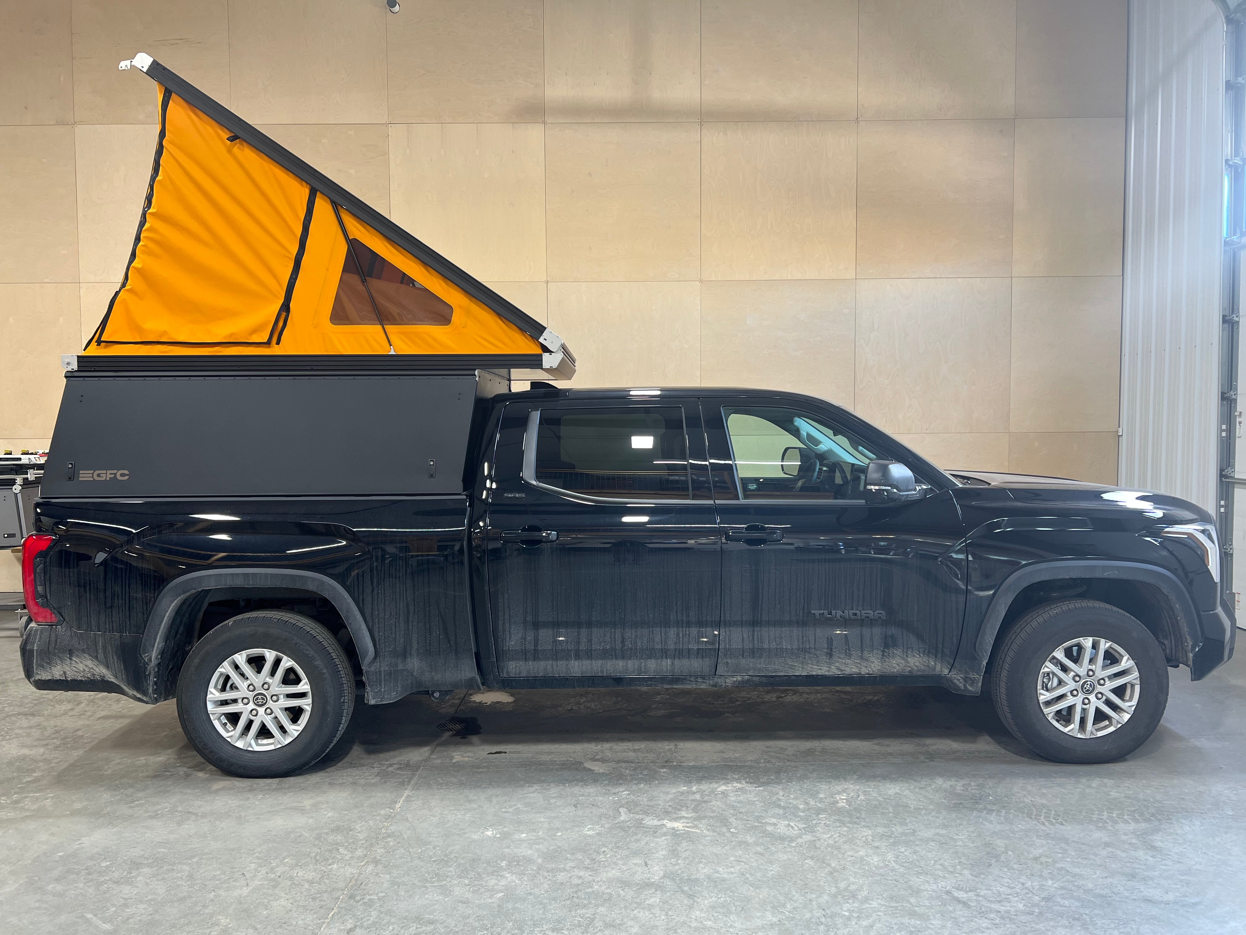 This 2023 Toyota Tundra is outfitted with a GFC Platform Camper with Black panels. Check out more build specs below.