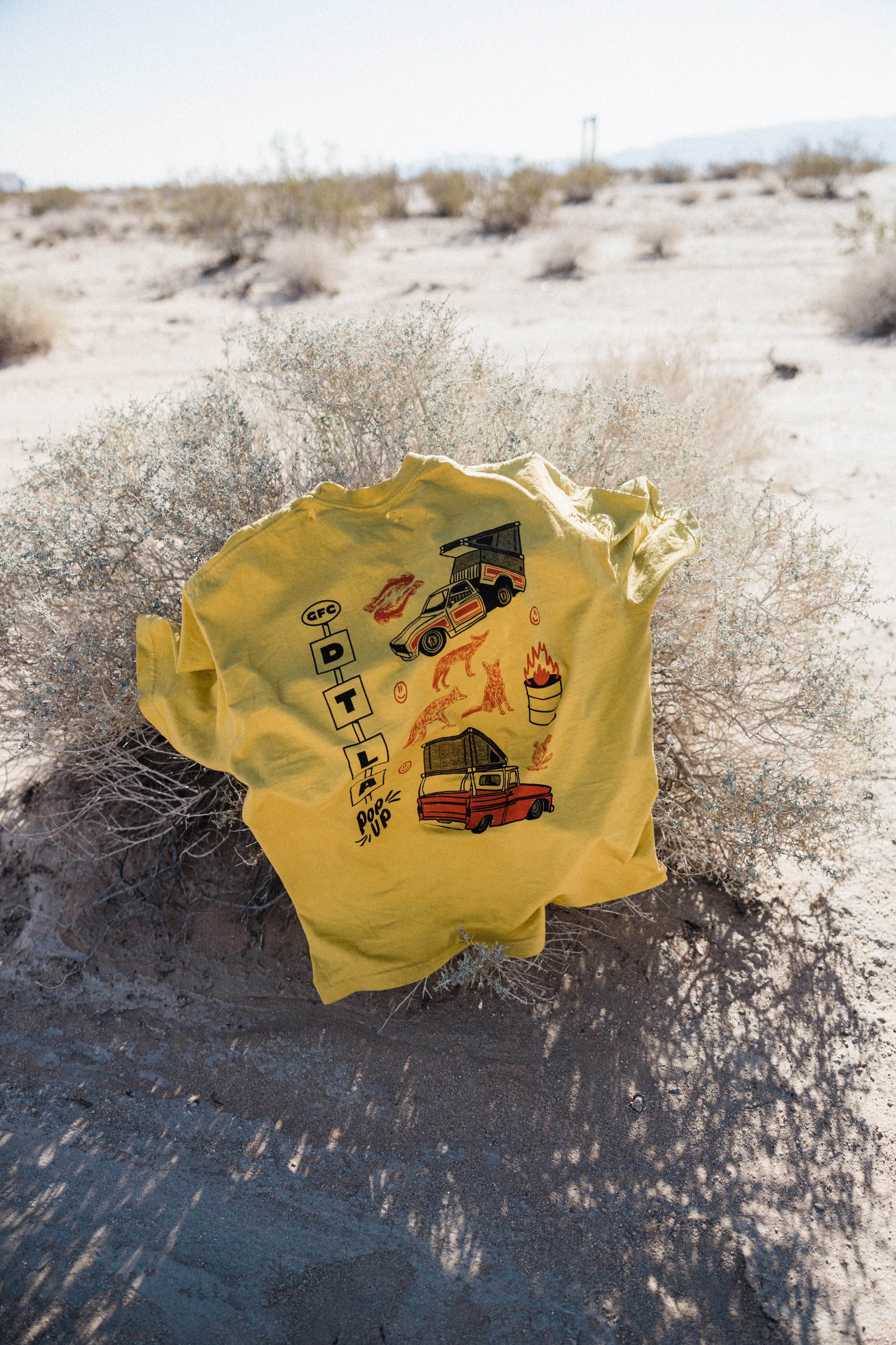 What could we do to make this even nerdier? Time to involve the GFC Community. So we hired GFC customer and LA based artist Gavin Sullivan to design the graphic, and he was even able to get the shirts printed in downtown LA. Hell, he even picked them up from print for us and drove them to our meetup in his camper equipped Tacoma.
