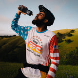 Crafted from 100% polyester, this jersey lets you stay cool and comfortable on the trails. Made right here in the USA, it's the perfect blend of quality and patriotism. So, hop on your bike, embrace the adrenaline, and make heads turn with the GFC x Cadence mountain bike jersey—because conquering the mountains shouldn't be the only thing that leaves you breathless.