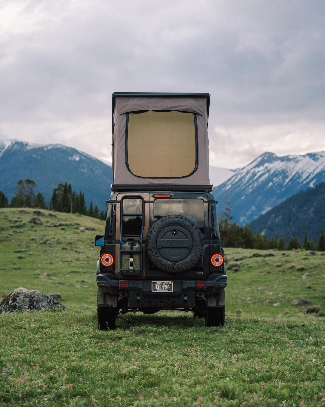 It works great for wider vehicles like Sprinter vans, full-sized trucks with GFC Toppers, and the Ineos Grenadier.